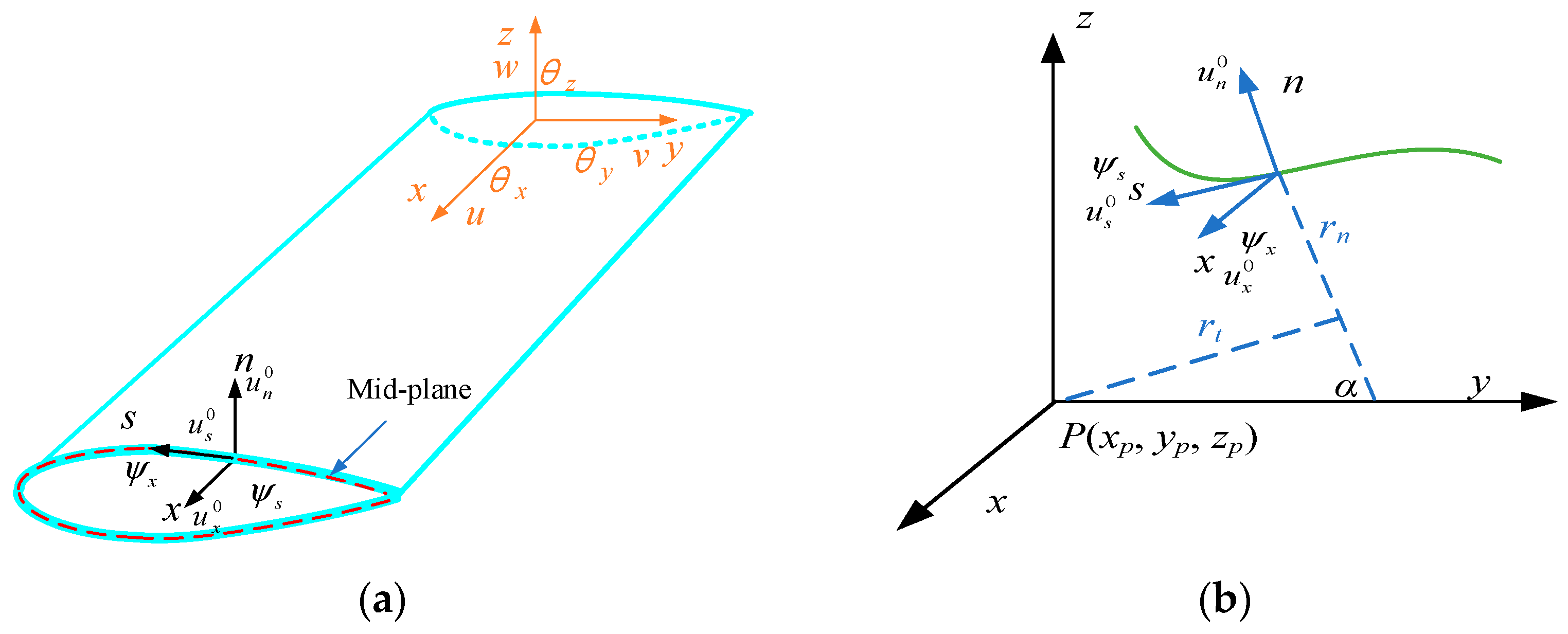 θz) are the global kinematic variables, which represent the displacements and rotations of the shell. The symbols