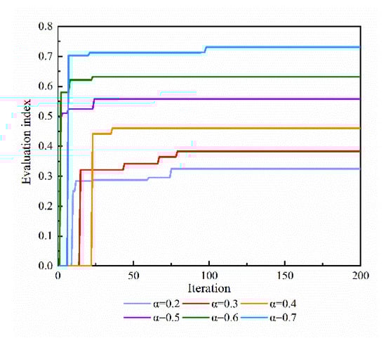 The third type is a coordinated target assignment method based on an evolutionary algorithm. Common algorithms in this category include particle swarm optimization [9], genetic algorithms [10], and ant colony optimization [11]. These algorithms optimize the target assignment problem based on the law of natural evolution and combine the survival laws of natural selection and survival of the fittest with the performance of the algorithms, thus making these algorithms highly robust and giving them a wide scope of application. However, these evolutionary algorithms have limitations. For example, they easily fall into a locally optimal solution, and their convergence rate is slow and prone to stagnation [12,13].