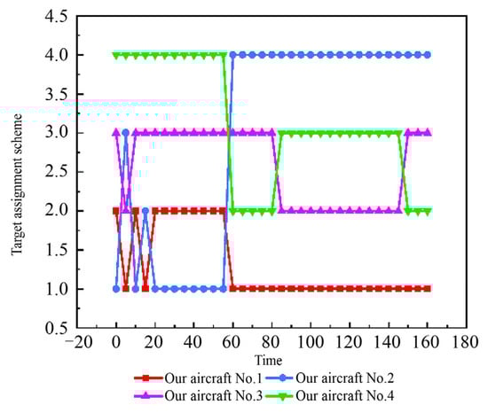 With the rapid advancement of science and technology, the frequency of information exchange between fighter jets has increased, information sharing capabilities have been significantly enhanced, and multi-aircraft coordinated operation has gradually become the main mode of modernized operations [1]. An aircraft within a formation transforms the single-aircraft operation advantage into a formation-coordinated operation advantage through effective coordination, thus realizing the operational effect of “1 + 1 > 2” [2]. Therefore, to maximize our situational advantage, analyzing the coordination among aircraft within a formation and deriving the optimal target assignment scheme that maximizes the advantage of our formation is of great significance.