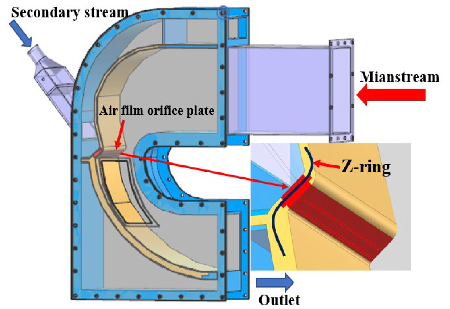 Although existing studies on film cooling have become relatively mature with respect to hole shaping, injection angles, and mainstream conditions, most investigations are still conducted in simplified flow environments such as flat plates or turbine blades. In contrast, studies targeting circumferentially complex configurations such as combustor liners remain comparatively limited. Owing to the strong coupling between the recirculation zone and the high-temperature mainstream within the combustor, as well as the intense three-dimensional mixing induced by curved surfaces and circumferential hole arrangements, the coolant film is more prone to deflection and breakup, leading to non-uniform coverage and substantially increasing the difficulty of hole-shape and hole-pattern design. Meanwhile, From the perspective of combustor engineering applications, the Z-profile feature hole configuration can effectively guide and distribute the coolant flow within a confined space and is conducive to enhancing near-wall attachment and spanwise spreading, thereby improving the coverage and cooling reliability of liner hot-spot regions.