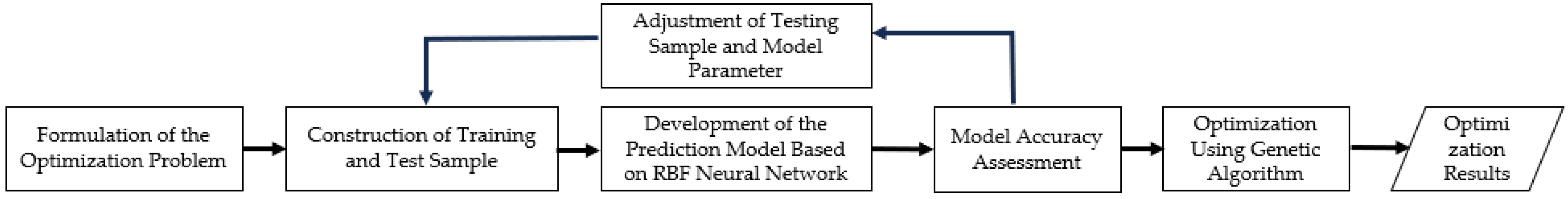 During surrogate-model construction, to ensure objectivity in model evaluation and robust generalization, the original dataset was randomly partitioned into a training set and a validation set. Specifically, 80% of the samples were used for training, while the remaining 20% were used for hyperparameter tuning and performance assessment. This strategy preserves the consistency of the underlying data distribution while enabling an effective evaluation of the model on unseen data, thereby mitigating overfitting and ensuring reliability in practical applications. After 750 training iterations (epochs), the radial basis function network was obtained. The training results are shown in