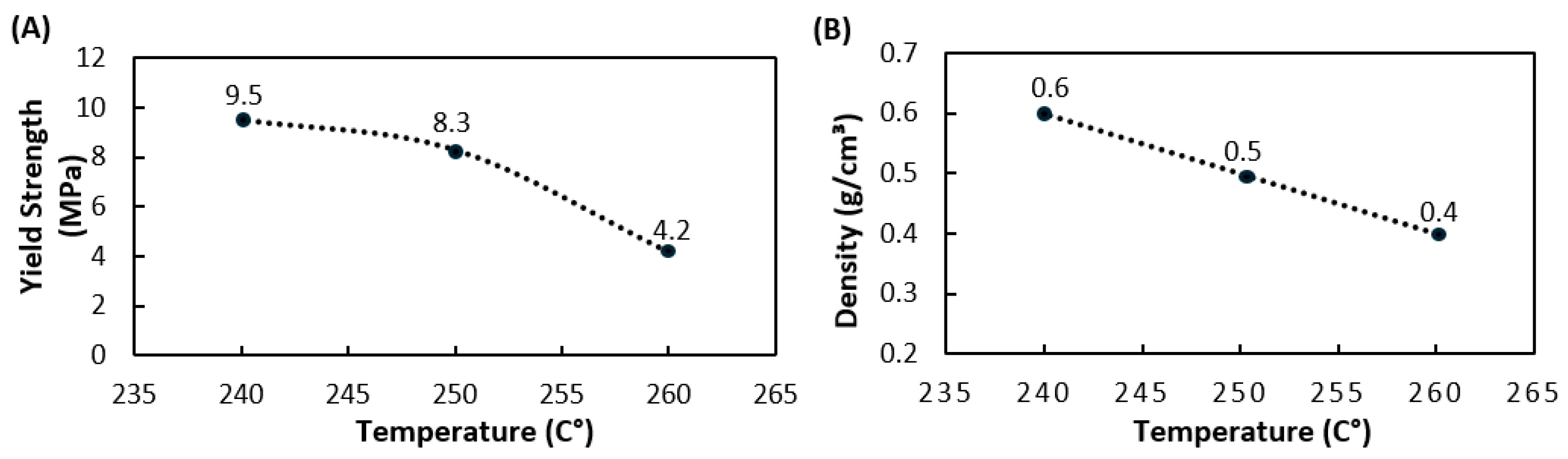 - Koltsakidis, S.; Tsongas, K.; Tzetzis, D. Combining Micro and Macro Relative Density: An Experimental and Computational Study on Hierarchical Porous 3D-Printed Polylactic Acid Structures. Adv. Eng. Mater. 2024, 26, 2402012. [Google Scholar] [CrossRef]