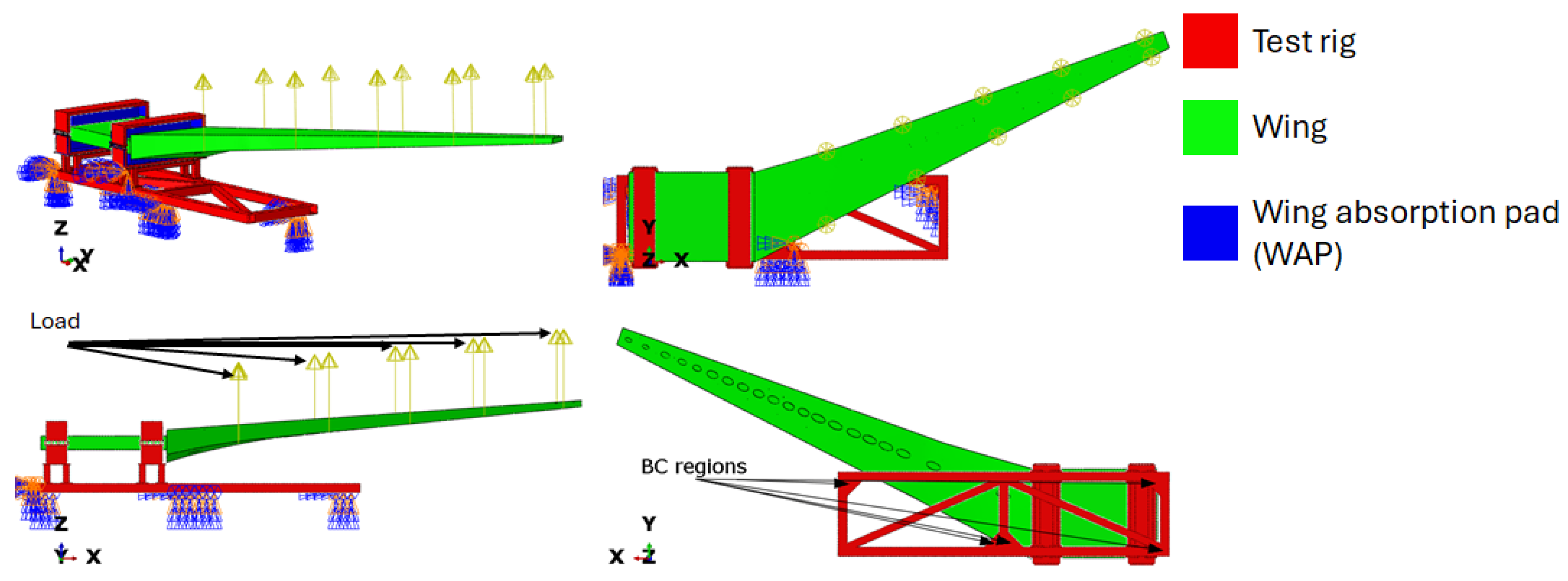 Chicago/Turabian StyleArhore, E. G., H. Ghasemnejad, I. Dayyani, Y. Xu, R. Halliburton, I. Hakon, J. Beckwith, F. Stanely, and J. Gaskell. 2026. "Experimental and Numerical Analysis of a Test Rig for Structural Testing of a Full-Scale Aircraft Wing" Aerospace 13, no. 1: 6. https://doi.org/10.3390/aerospace13010006