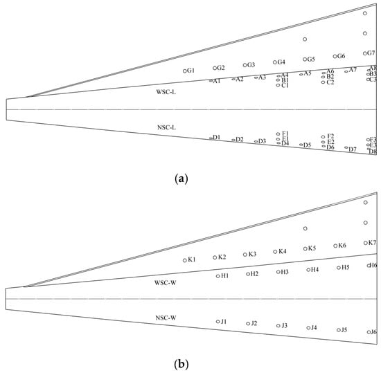 Sensor layout of the fin–cone model: (a) leeward side; (b) windward side.