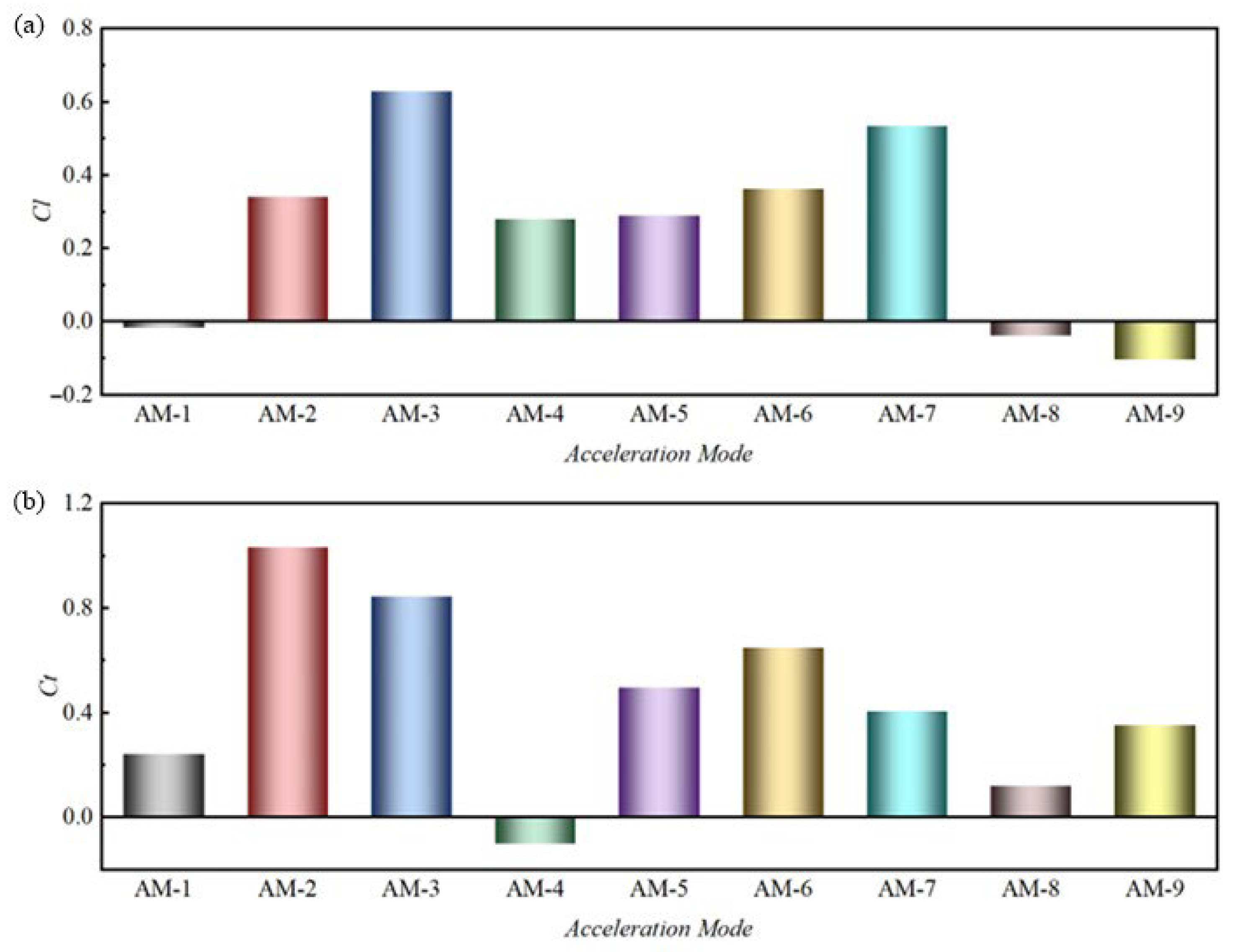 4.1. Influence of Acceleration Mode on Aerodynamic Performance