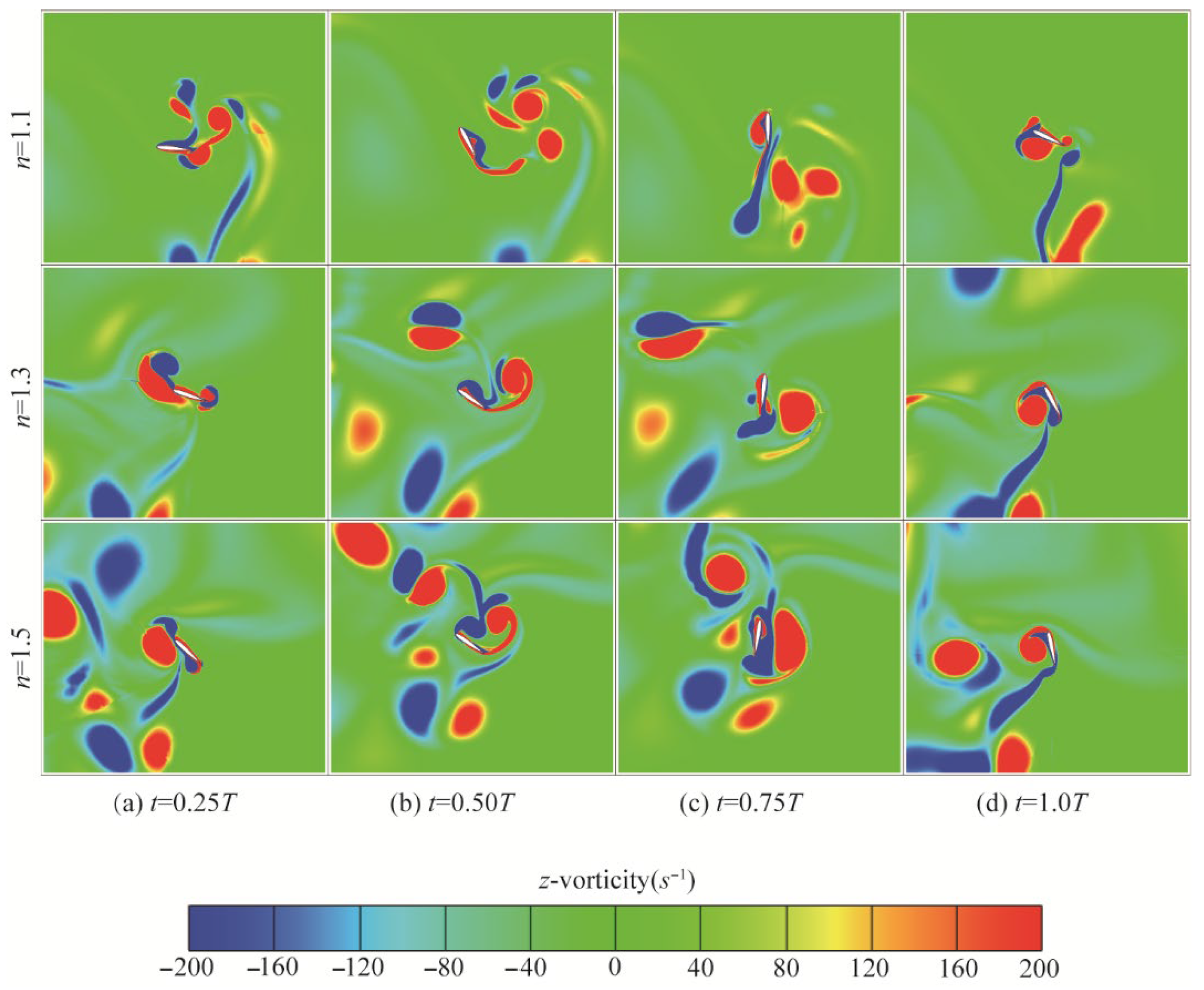 - Boudis, A.; Bayeul-Laine, A.C.; Benzaoui, A.; Oualli, H.; Guerri, O.; Coutier-Delgosha, O. Numerical investigation of the effects of nonsinusoidal motion trajectory on the propulsion mechanisms of a flapping airfoil. J. Fluids Eng. 2019, 141, 041106. [Google Scholar] [CrossRef]