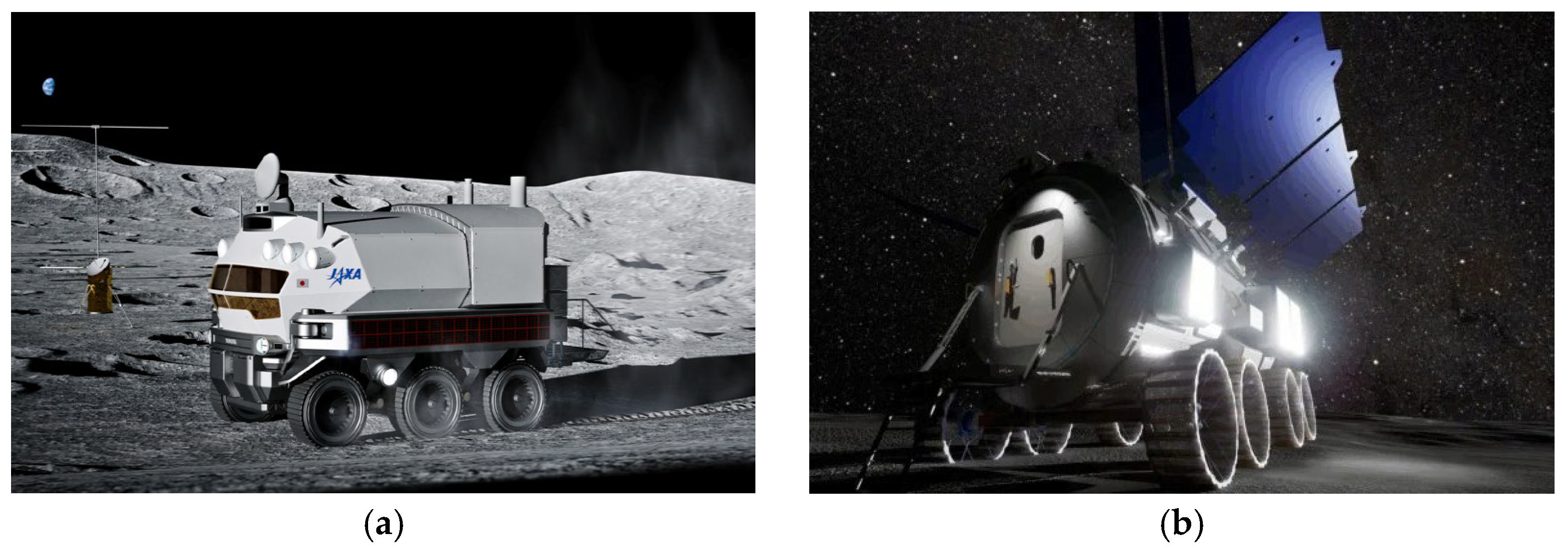14]. Such initial missions will exhibit a demand for oxygen and water dependent upon mission duration, crew size, and habitation system design, inclusive of the supporting extravehicular activity (EVA) and environmental control and life support (ECLS) system architectures. While the National Aeronautics and Space Administration (NASA) and China National Space Administration (CNSA) are leading various efforts for early crewed lunar missions, two detailed habitation concepts supporting NASA’s Artemis campaign provide sufficient insight for estimating initial habitation consumable demand: the Japan Space Agency (JAXA) Pressurized Rover (PR) and the Italian Space Agency (ASI) Multi-Purpose Habitat (MPH), as shown in
