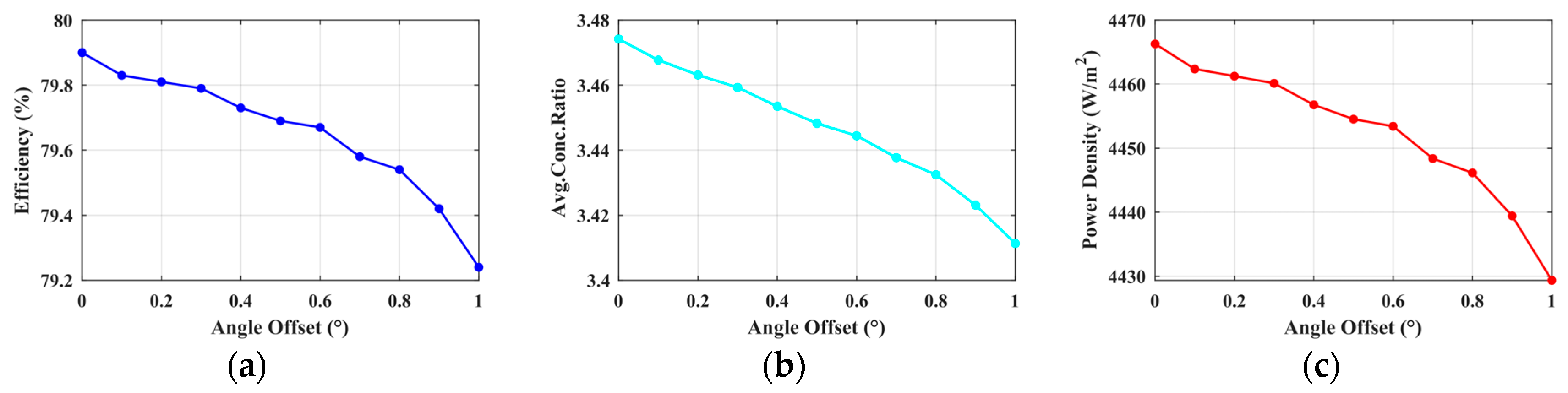 | Weight α1 | Efficiency | Power Density | PV Area | Avg Concentration | Num Segments |