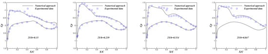 The RANS equations are discretized using a second-order central difference finite volume method. The convective term is discretized using the second-order upwind Scheme Roe FDS (Flux Differences Splitting) [20]. The turbulence effects are modeled using the Spalart–Allmaras (S-A) turbulence model [21].