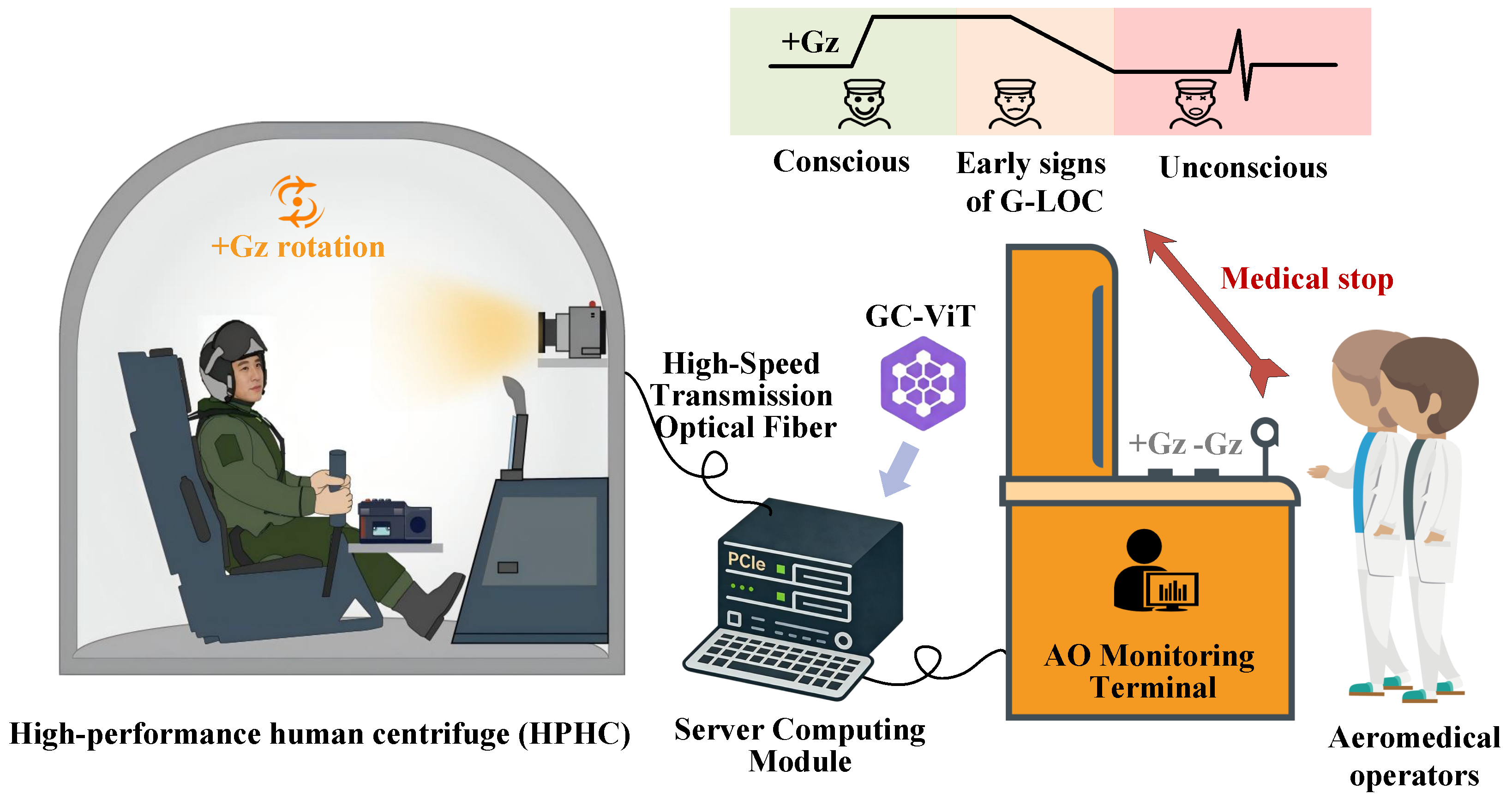 HPHC training is typically overseen by aeromedical operators, who continuously monitor the pilots through video surveillance that records the pilots’ real-time images. Based on the responses of the trainees, the training intensity can be adjusted to optimize performance while minimizing the risk of G-LOC. Ideally, training should be halted as soon as symptoms of G-LOC are identified, such as lack of eye contact, increased facial stress, or mild muscle tension in the face. AOs issued a medical stop order when early signs were detected, halting the centrifuge from continuing to exert acceleration. However, G-LOC often develops subtly and may occur before any obvious symptoms become apparent. The rapid progression and transient nature of these early signs make it exceptionally challenging for aeromedical operators (AOs) to detect and interpret them in real time, even with extensive experience.