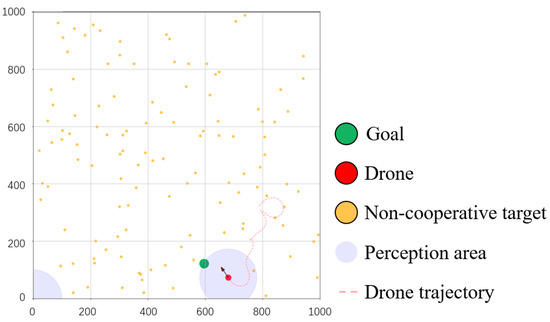 - UAV acceleration decisions are influenced by the positions of both the goal point and non-cooperative targets.