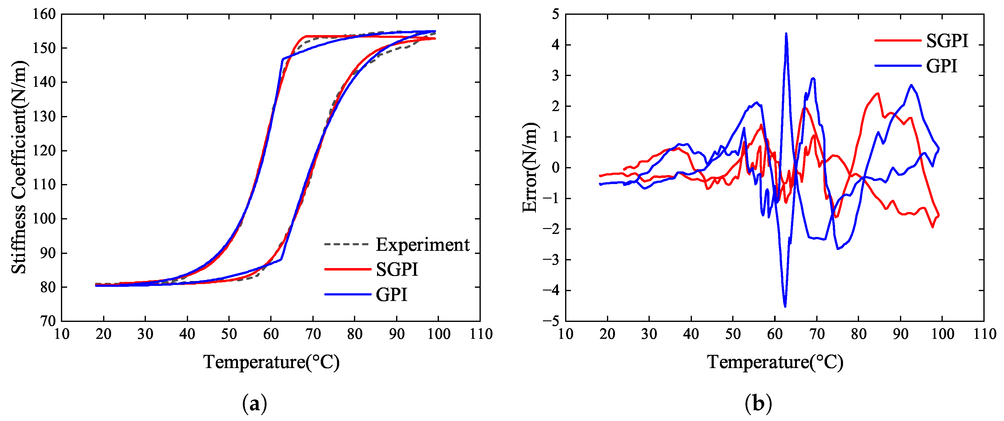 Figure 7a compares the identification results of both the SGPI and GPI models against the experimental data, while