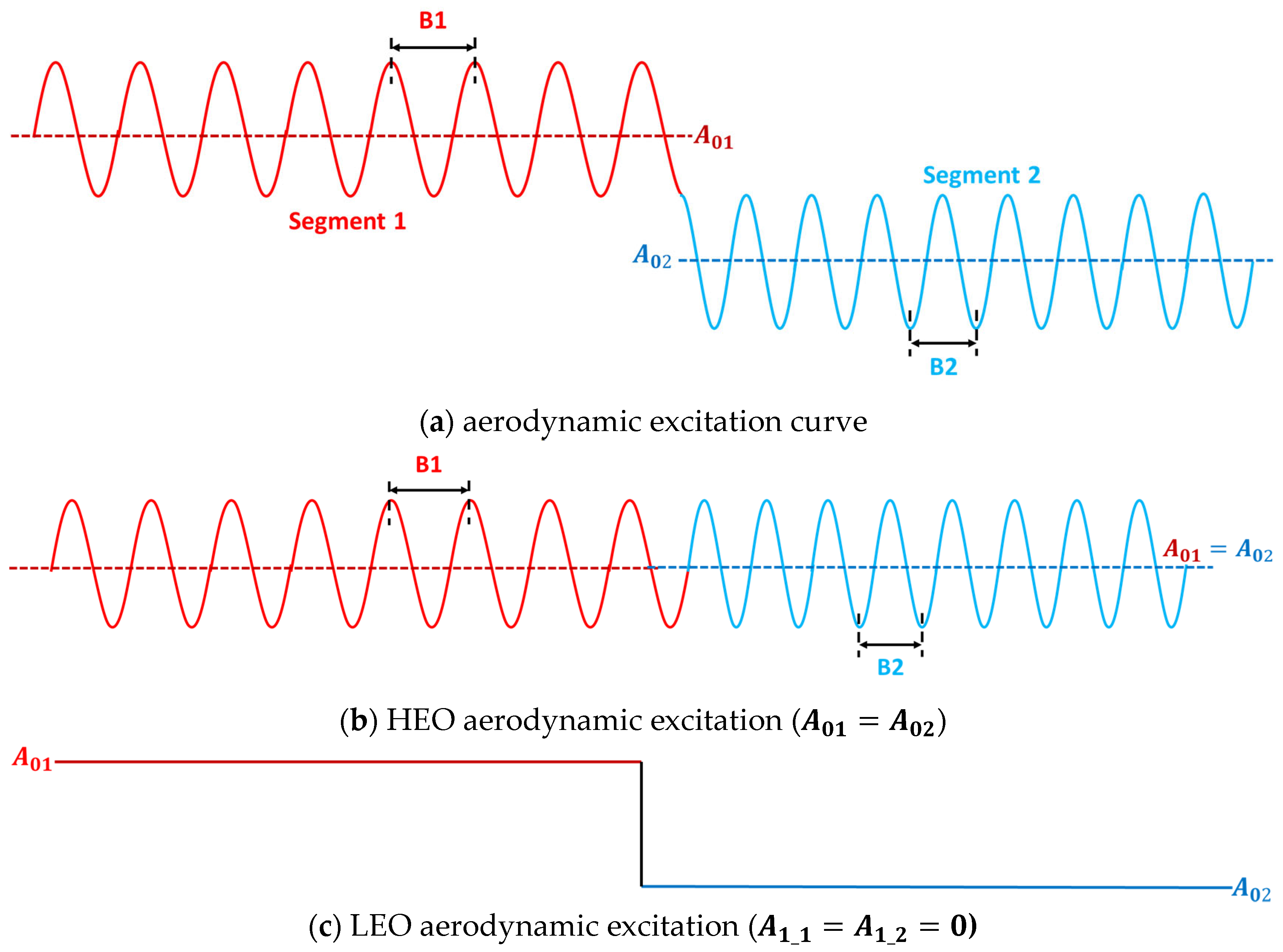 represents the amplitude of the nth-order LEO aerodynamic excitation for the 2-segment non-even-split layout. Both values can be calculated using