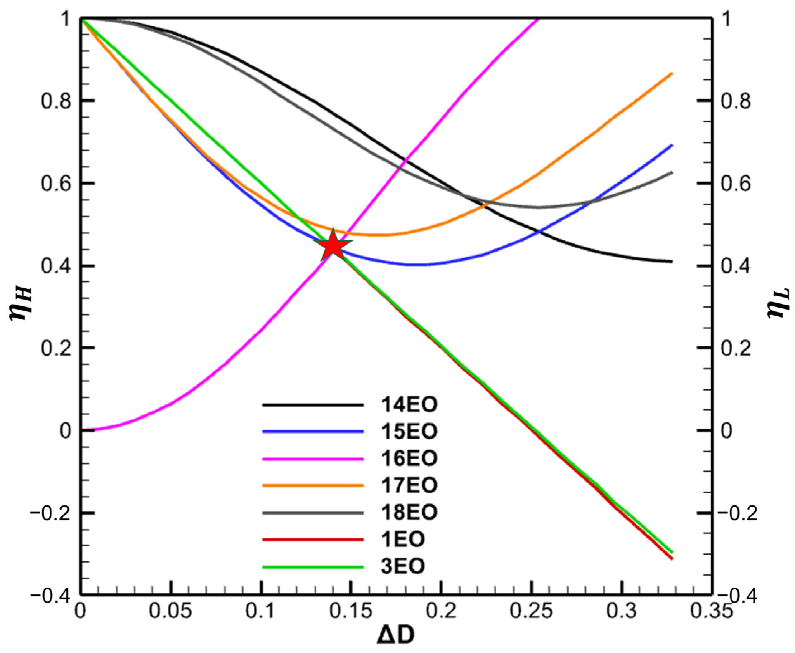 Finally, the suppression effect curves of multiple EO aerodynamic excitations are plotted. Combining the suppression effects and , the intersection of the suppression effect lines of HEO and LEO, for the order of greatest concern, is selected as the optimal stator asymmetry layout of the turbomachinery component under investigation.