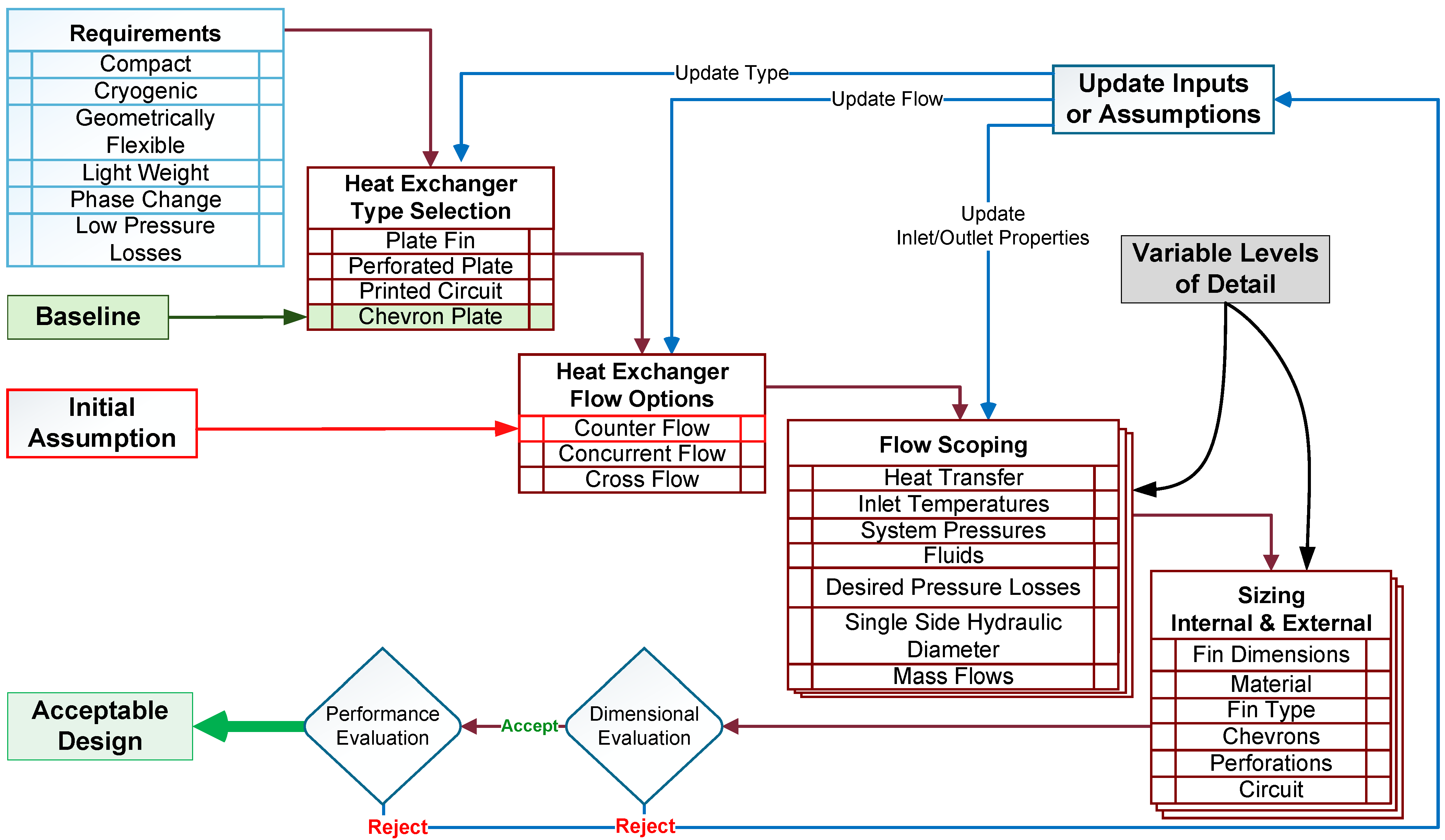 The iterative design process consists of six steps: requirements capture, type selection, flow selection, flow scoping, sizing and dimensional evaluation, and performance evaluation. This paper examines HX sizing for alternative propulsion systems, with particular attention to superconducting architectures.