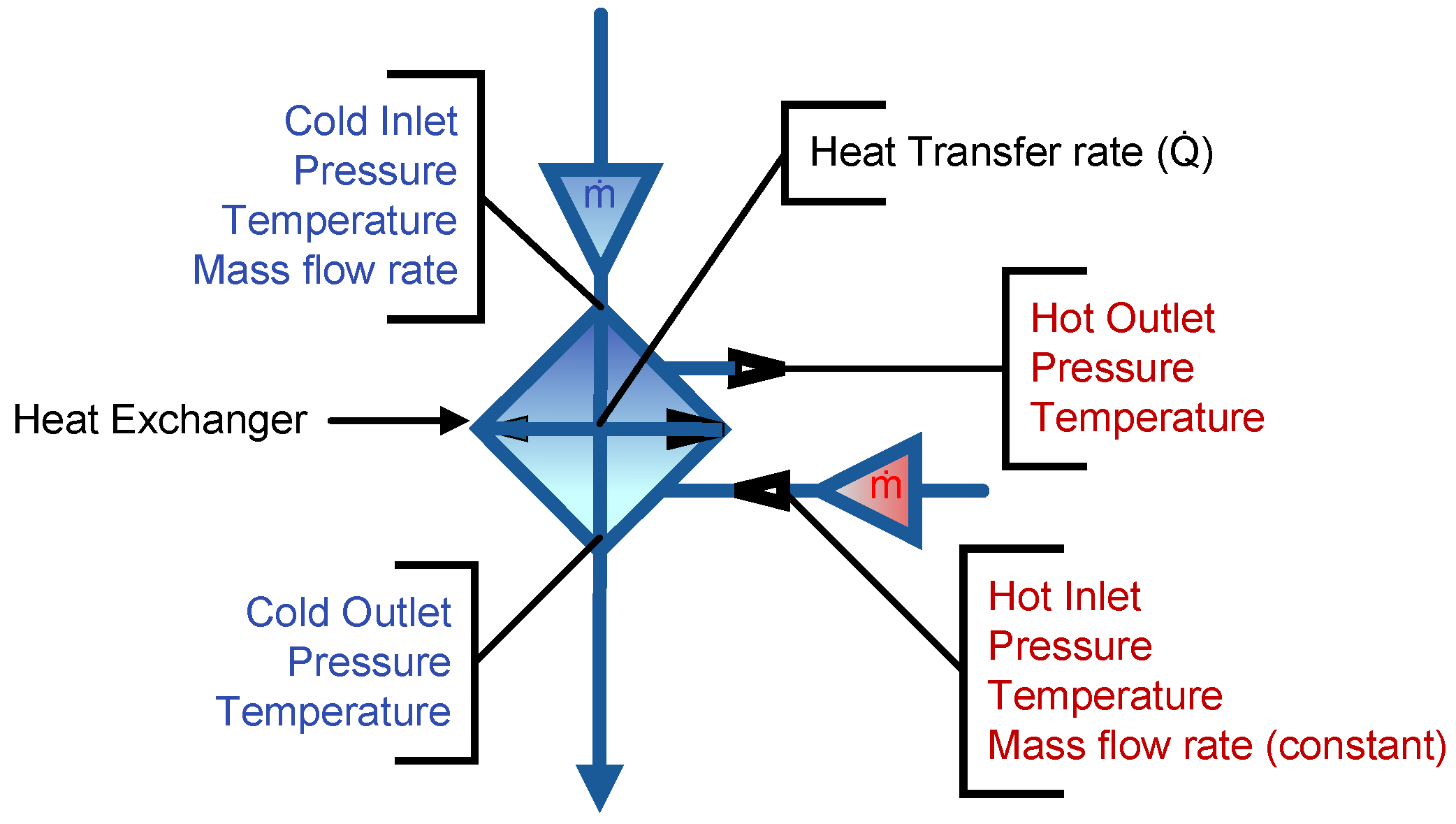 ), and inlet and outlet fluid properties.