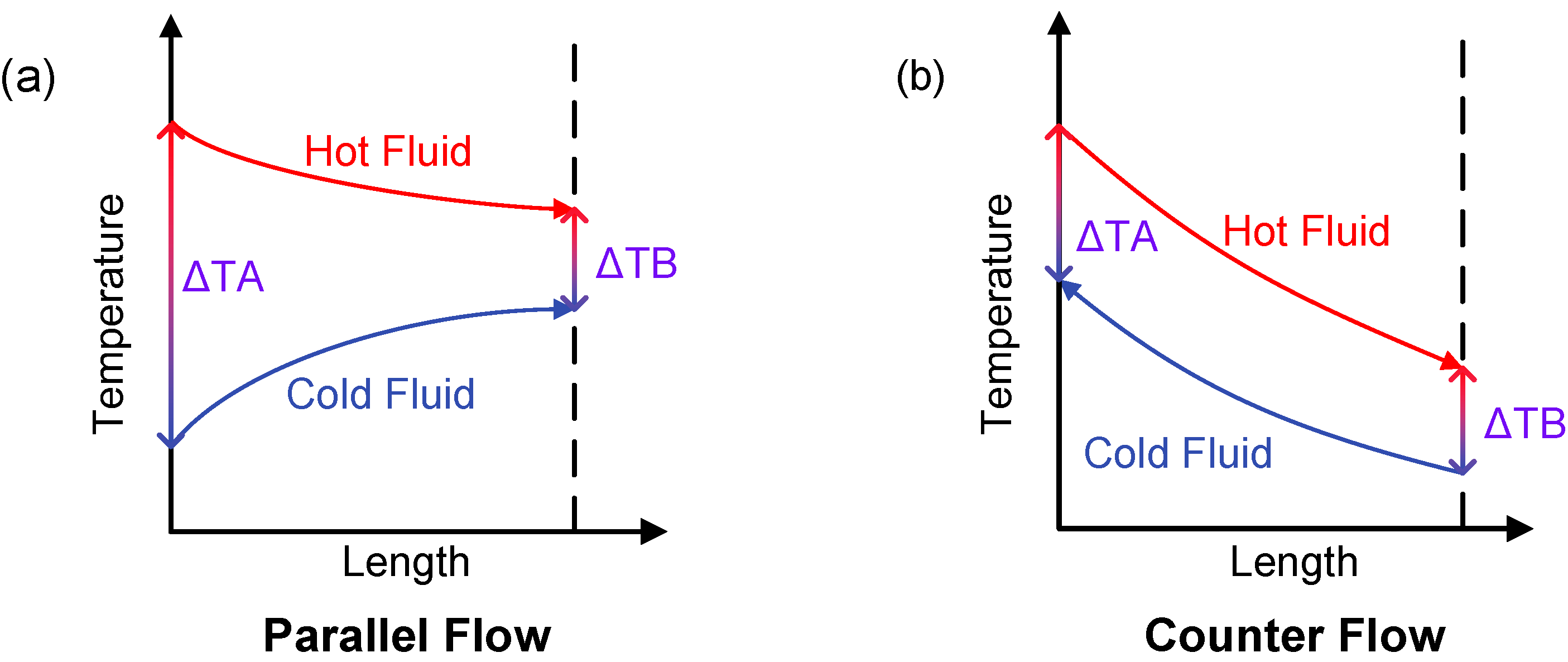 For the hot side of the HX, an analogous equation applies with inverted temperature differentials, as presented in Equation (