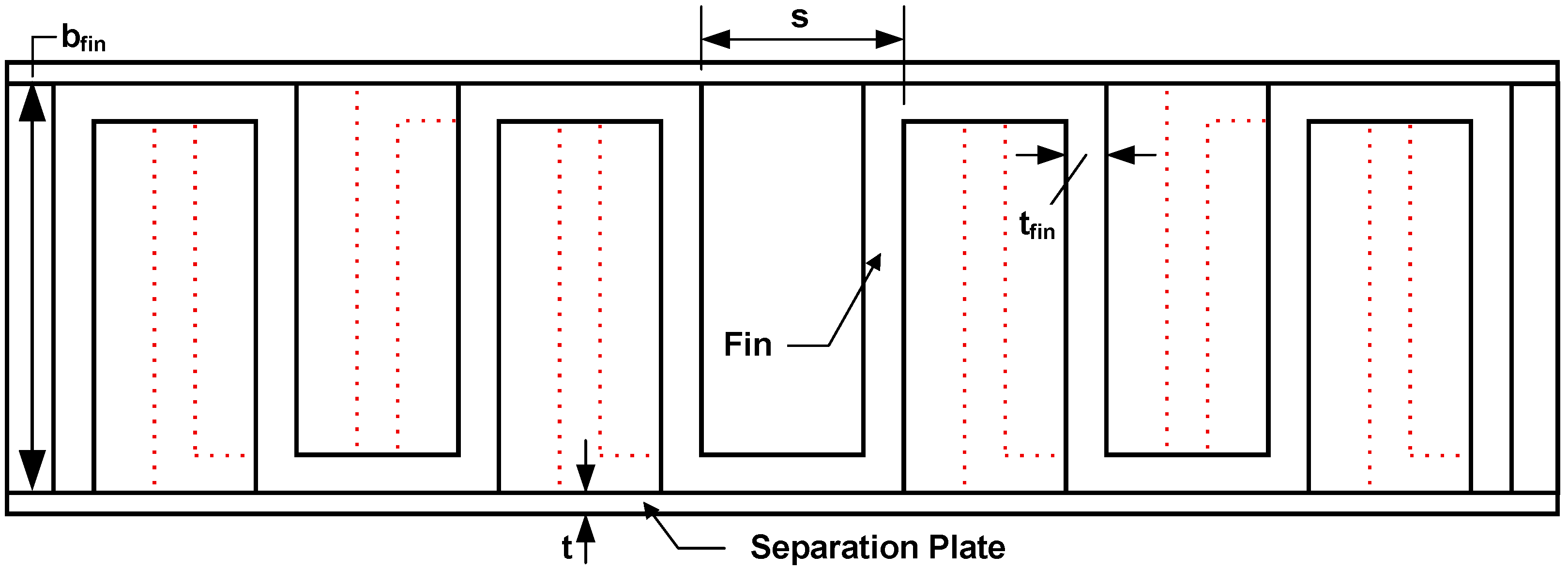 L) are used. Since there is a single set of fins, the length of the HX is the strip fin length (
