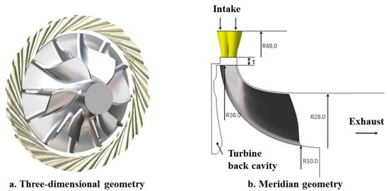 Three-dimensional and meridian geometry of the ECS radial flow turbine.