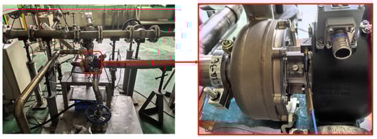 The turbine cooler has five typical operating conditions within the flight envelope. The working conditions for the turbine unit are listed in Table 1, where inlet temperature and pressure, as well as the outlet pressure, are control parameters, while rotating speed and outlet temperature are measured. Vibrations are measured using a piezoelectric accelerometer. Figure 9 shows an on-site photo of the vibration test of an aircraft turbine cooler; the sensors used in the test are listed in Table 2.