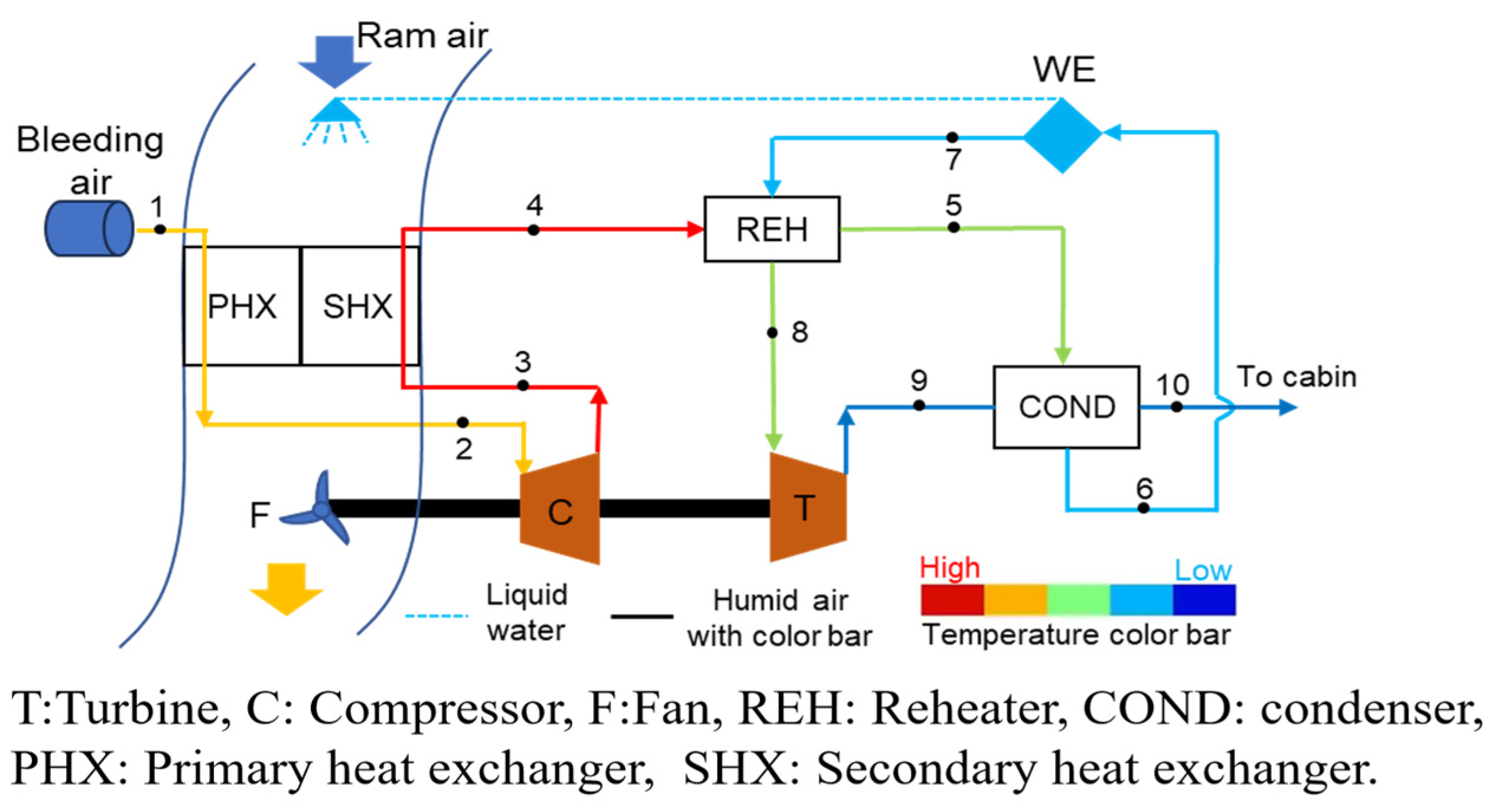 - Yang, Y.; Chen, S.; Sheng, C.; Xie, H.; Luo, G.; Hou, Y. Study on Coupling Performance of Turbo-Cooler in Aircraft Environmental Control System. Energy 2021, 224, 120029. [Google Scholar] [CrossRef]