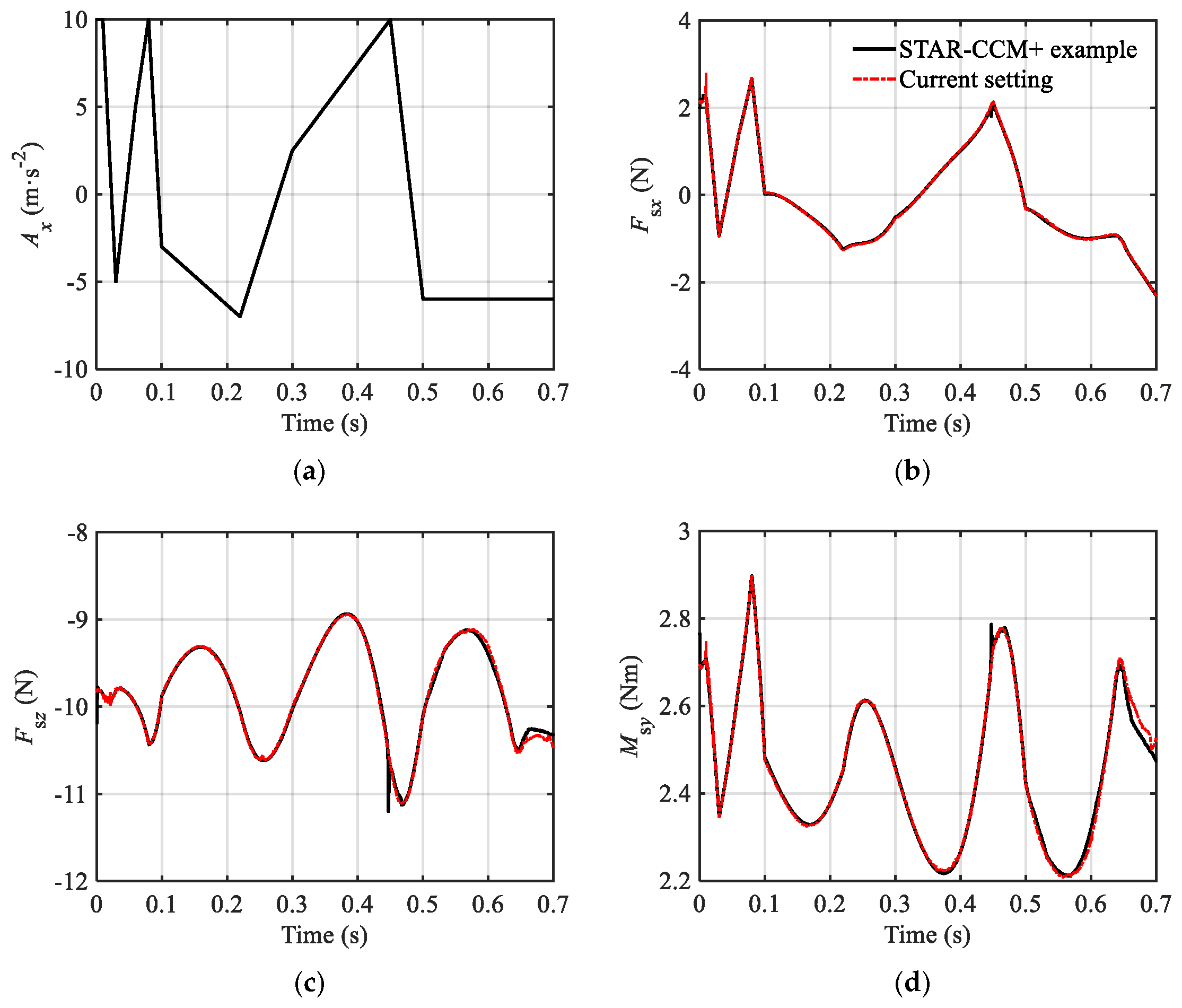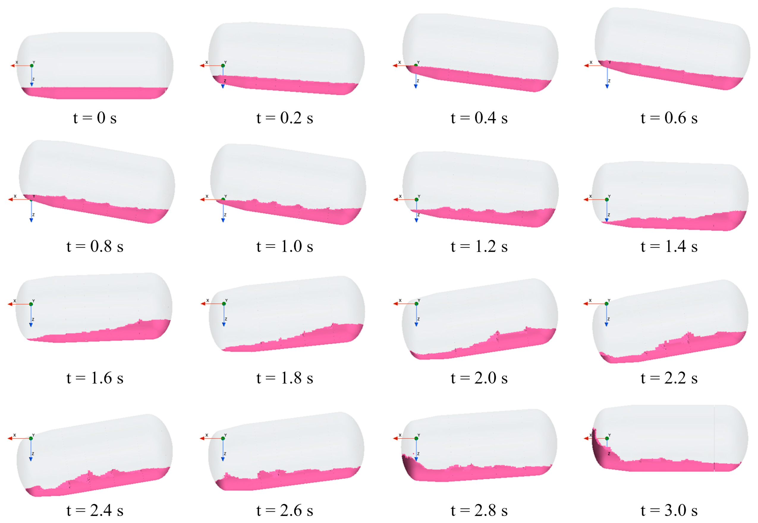 12] proposed a rigid–liquid coupling dynamic numerical model for spacecrafts and described the impact of sloshing by analyzing the time response of the displacement of the tank.