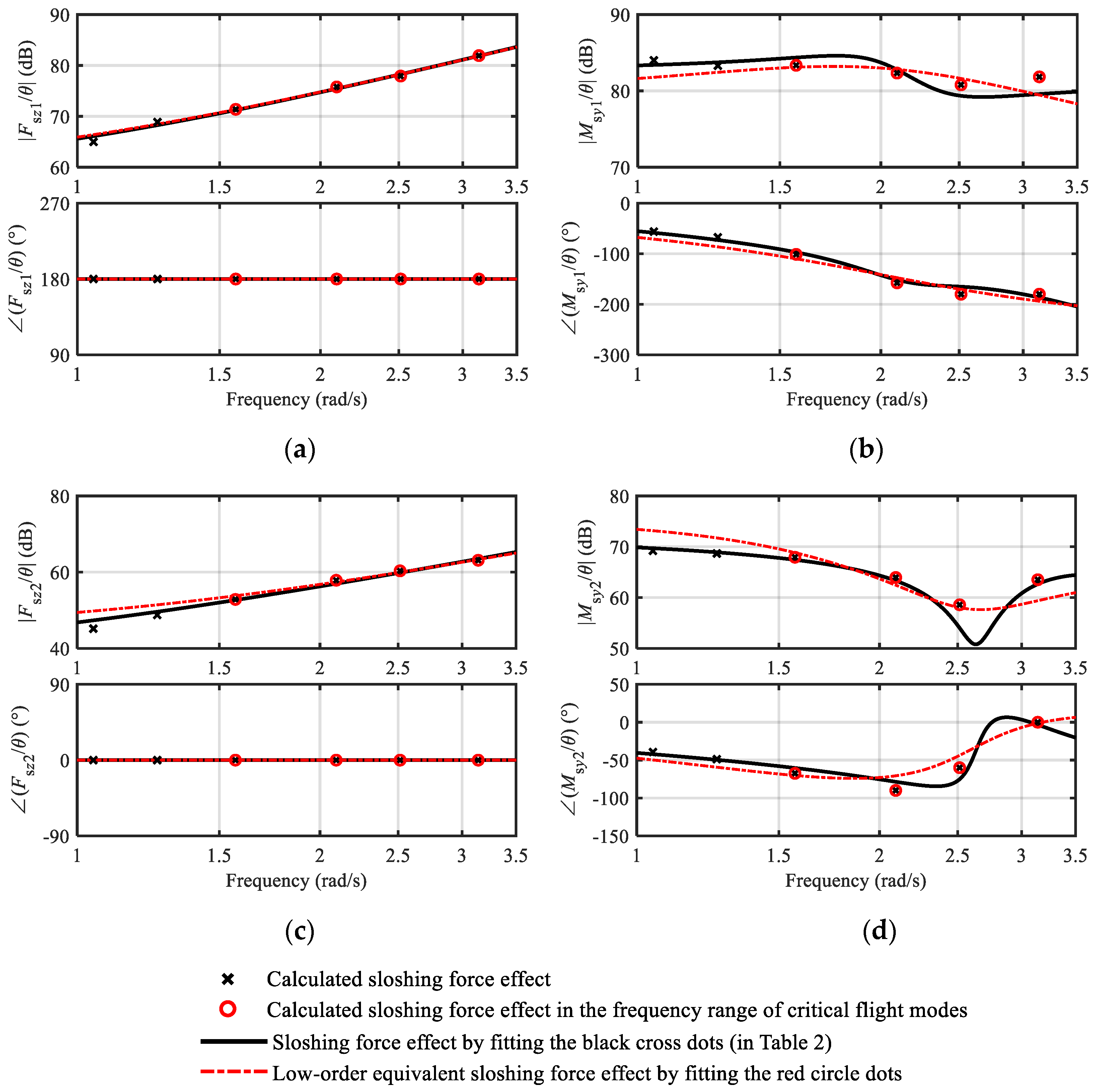 A targeted Frequency Shaping Compensation (FSC) control is designed by introducing the frequency characteristics of the sloshing force effect as transfer functions, which help suppress liquid sloshing coupling through frequency shaping and improve flight stability. A total of 3~4 frequency points are taken around the typical short-period flight modes to obtain the frequency characteristics of the sloshing force effect through numerical calculations (or experimental methods). By fitting these points with a transfer function of second order or below, namely a sloshing compensation model, the frequency information in the significant range is captured. Examples of the low-order transfer functions are shown in