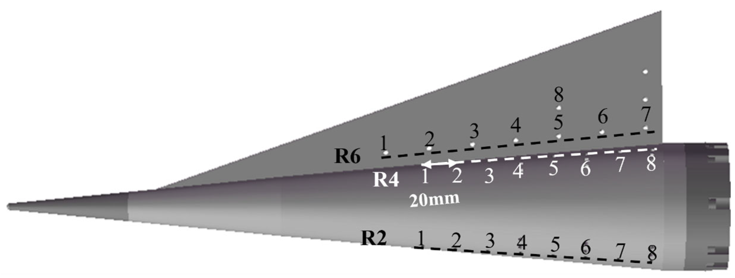 - Middlebrooks, J.B.; Corke, T.C.; Matlis, E.; Semper, M. Cross-Flow Instability on a Swept-Fin Cone at Mach 6: Characteristics and Control. J. Fluid Mech. 2024, 981, A18. [Google Scholar] [CrossRef]