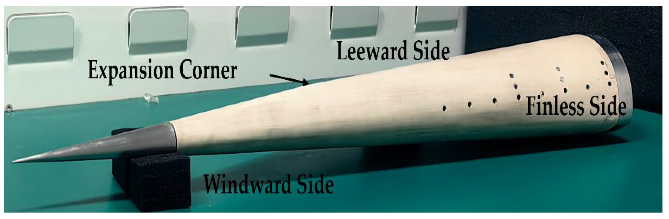 - Li, X.; Xu, B.; Huang, G.; Wu, J. Experimental Study on the Boundary Layer Transition of a High-Speed Fin-Cone Configuration. Adv. Aerodyn. 2025, 7, 10. [Google Scholar] [CrossRef]