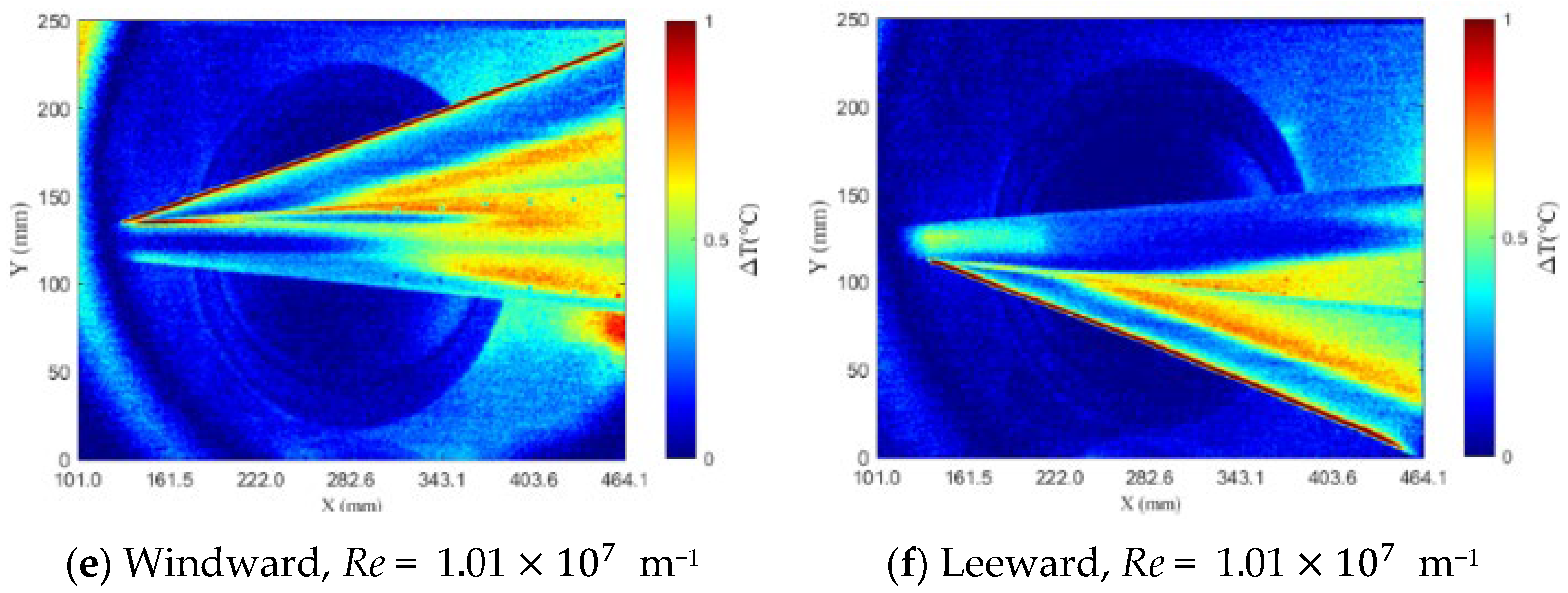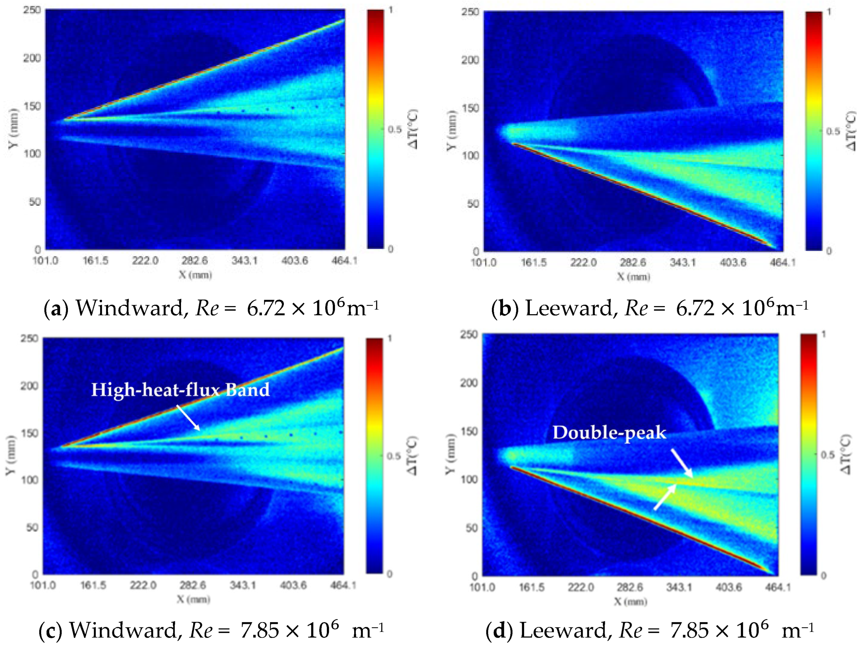 - Qiu, H.; Shi, M.; Zhu, Y.; Lee, C. Boundary Layer Transition of Hypersonic Flow over a Delta Wing. J. Fluid Mech. 2024, 980, A57. [Google Scholar] [CrossRef]