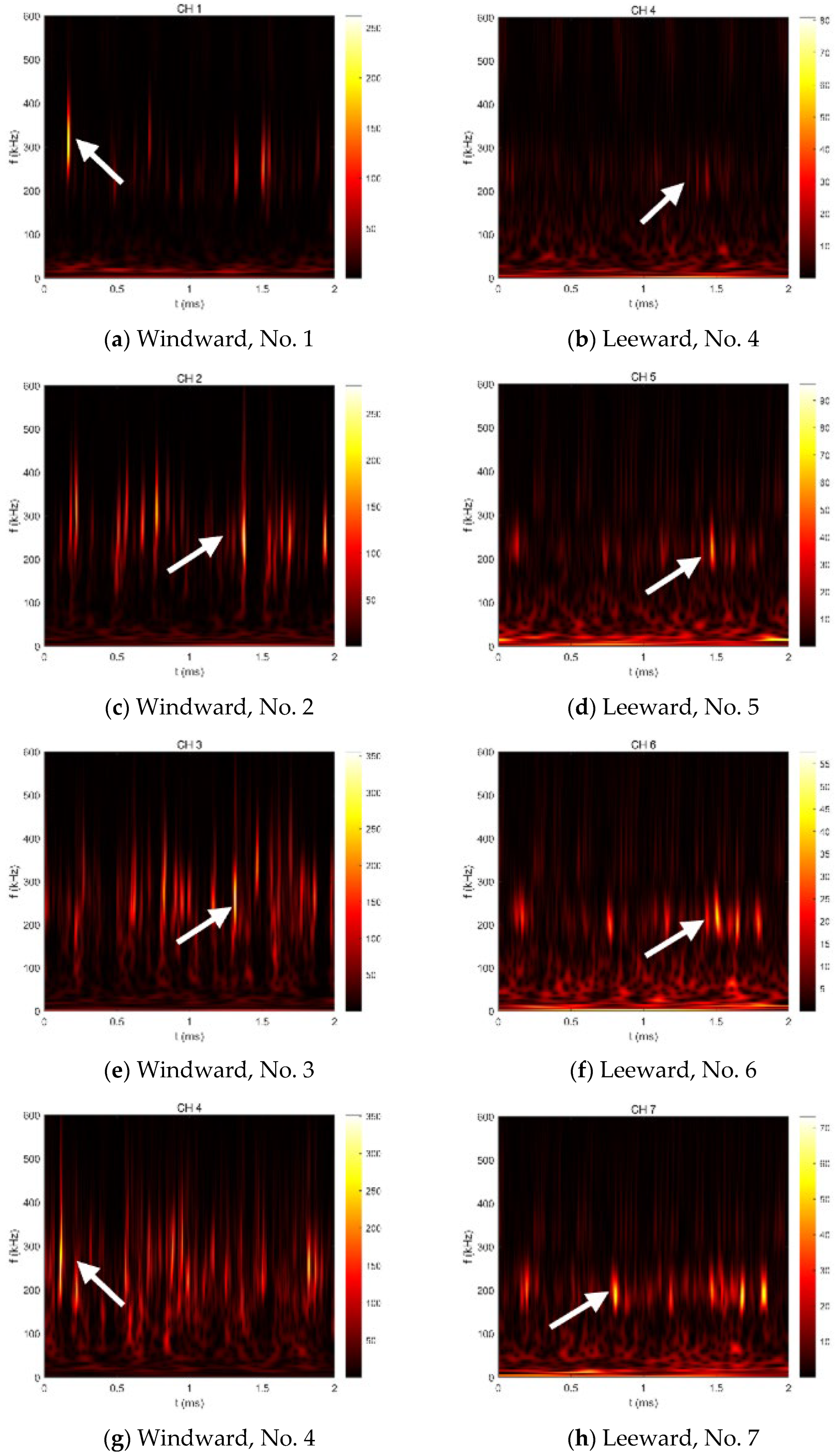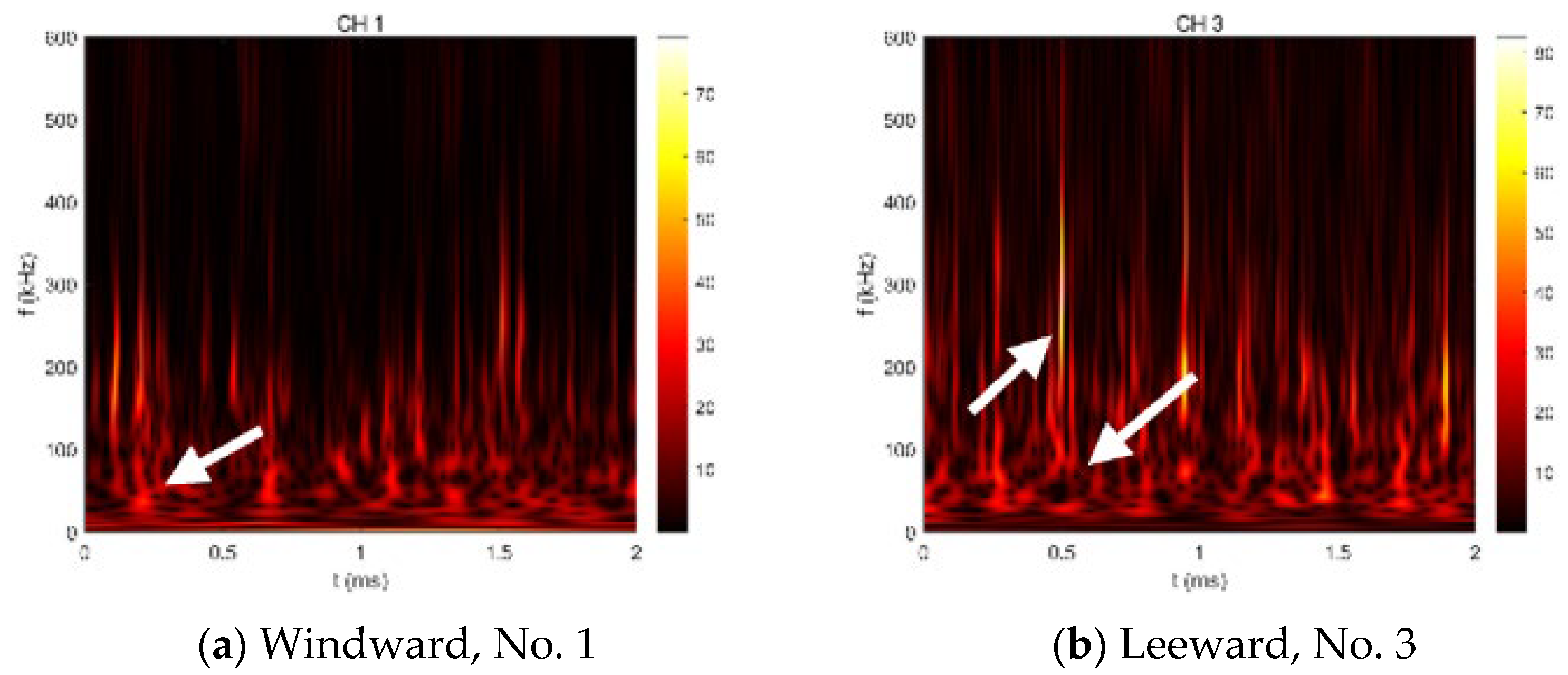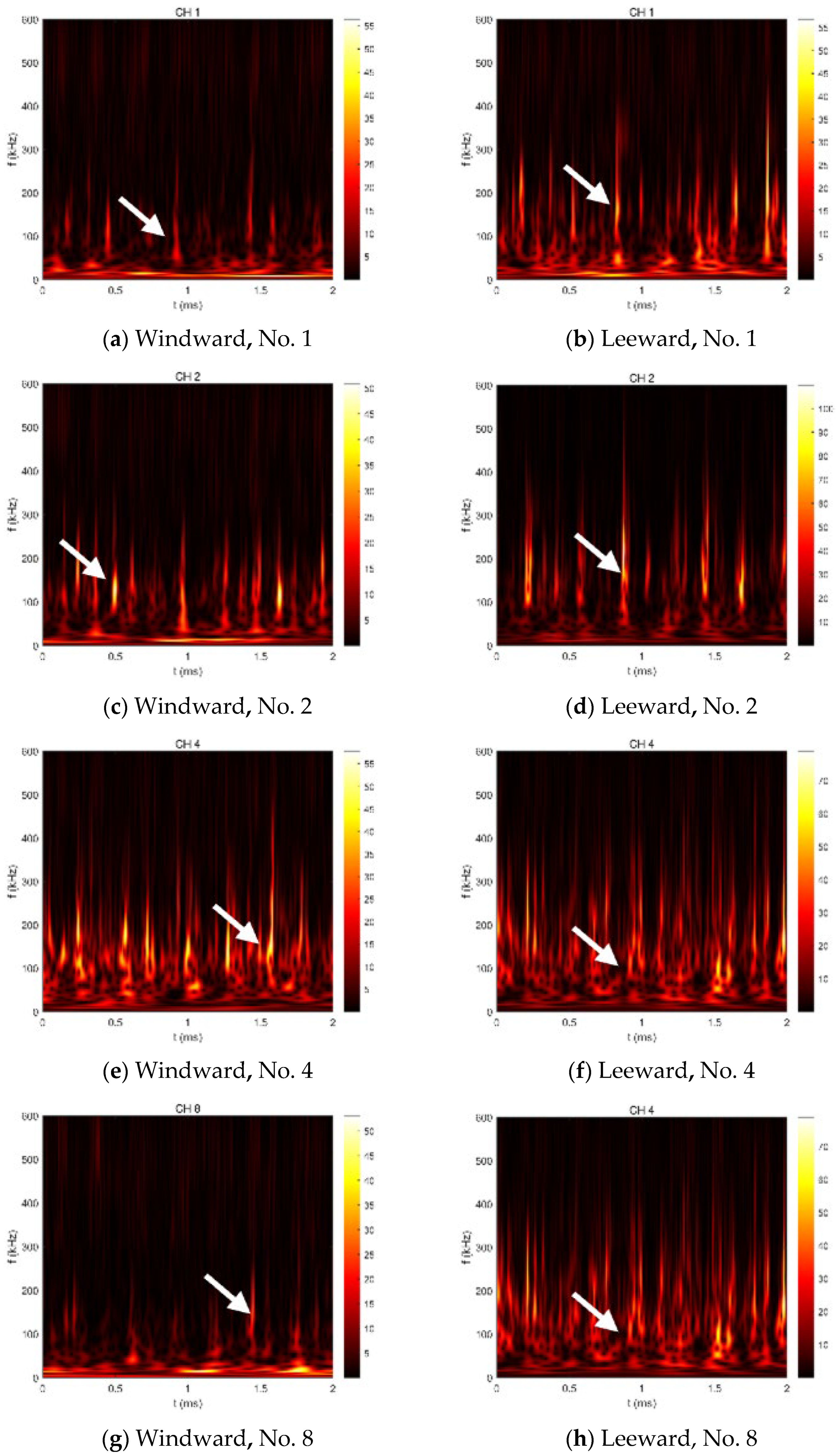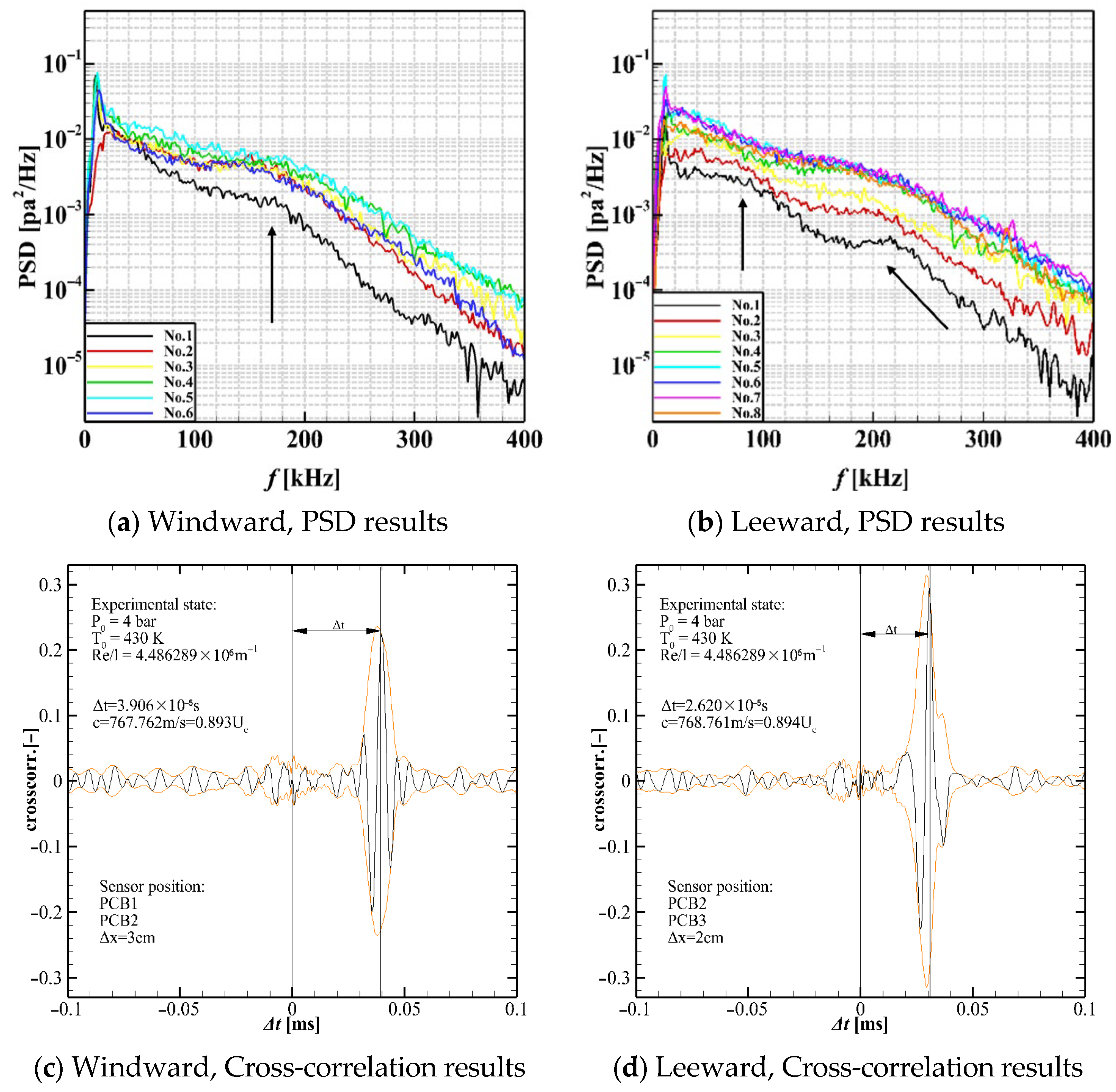 3.3.2. Pressure Fluctuation Spectral Analysis on the Fin–Cone Junction