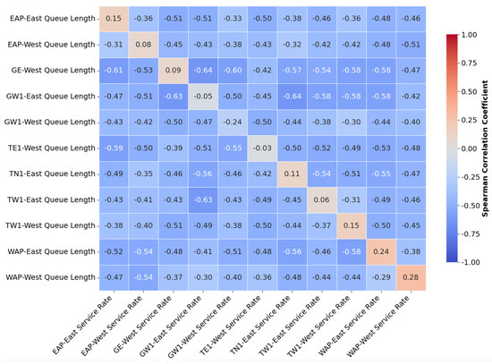 where denotes the steady-state average queue length after the queue has operated for a long period; represents the steady-state server utilization rate; and is the coefficient of variation of service time, defined as the ratio of the standard deviation to the mean of service time, which is used to describe the degree of fluctuation in service time.