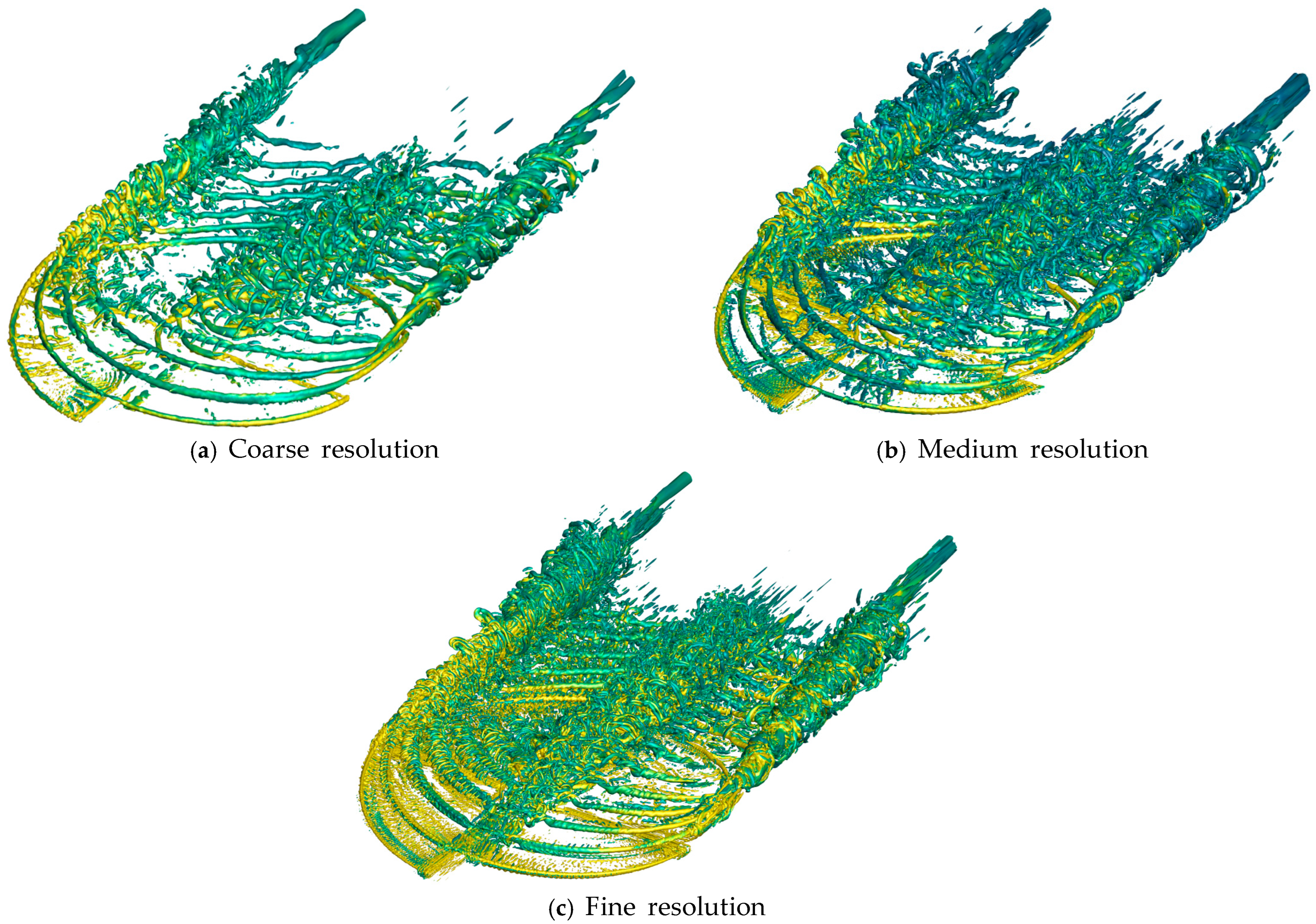 - Yang, X.; Griffin, K. Grid-point and time-step requirements for direct numerical simulation and large-eddy simulation. Phys. Fluids 2021, 33, 015108. [Google Scholar] [CrossRef]