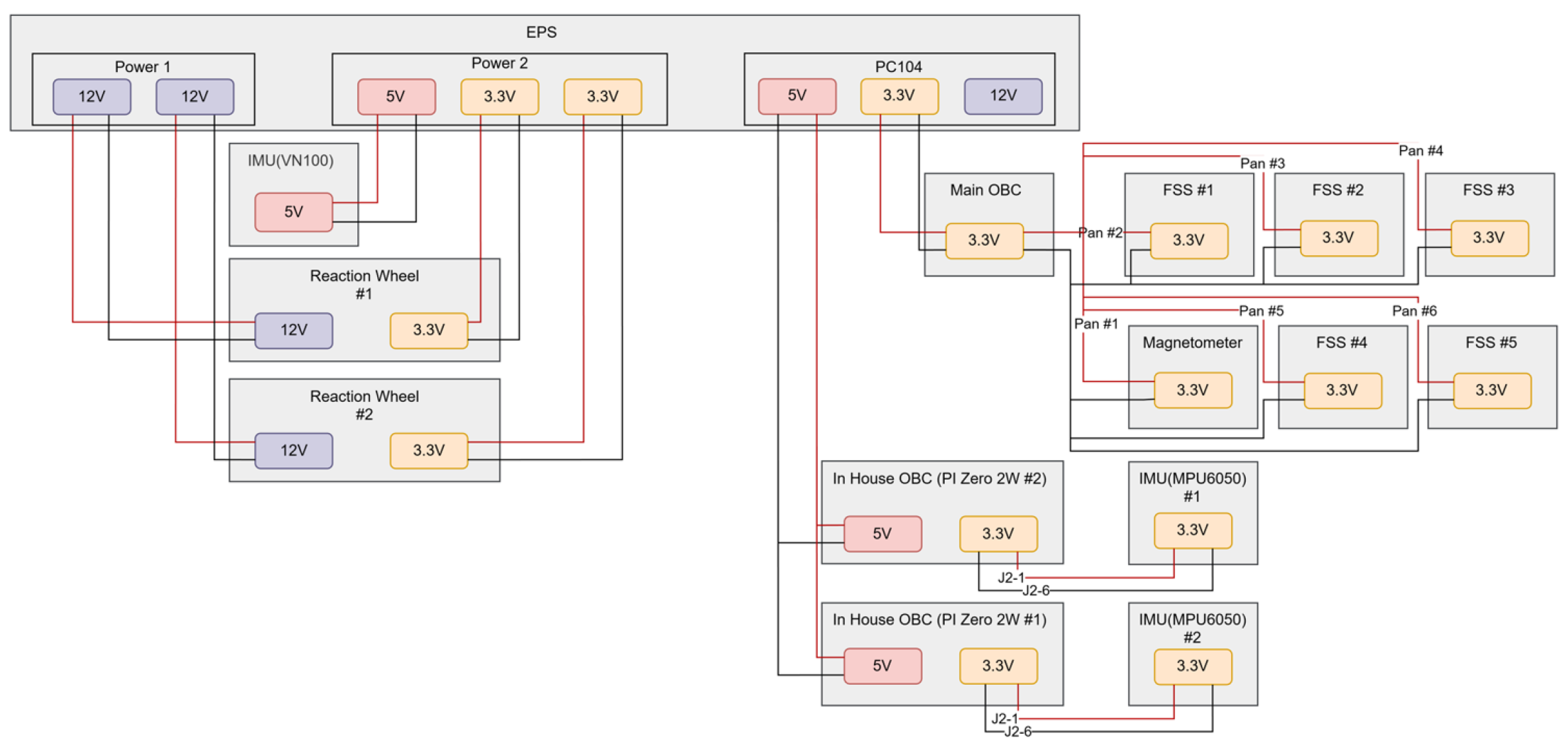 Figure 3. The electrical power system (EPS) regulates and distributes power to the ADCS components via dedicated voltage lines, providing stable power suitable for the specific operational needs of sensors, logic circuits, and high-power actuators.