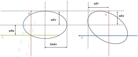 In a stationary condition, the differential semimajor axis will be small; the shape of the relative trajectory is a walking ellipse with limited drift. Upon an orbital period, it is meaningful to consider that the minimum relative distances will be determined by (see Figure 1):