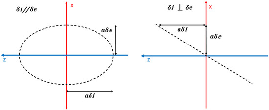 Figure 4. Relative motion for parallel (left) and orthogonal (right) δ e / δ i vectors.