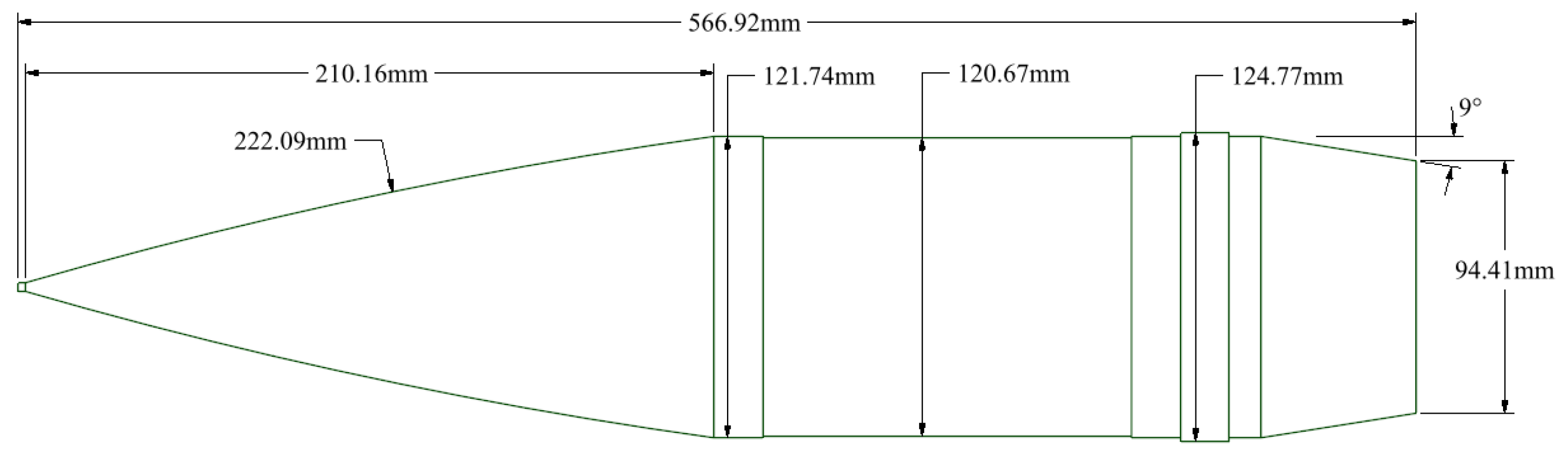 Table 7. The results illustrate the range of muzzle velocity deviations from the design Mach number of 2.6. Even with a significant reduction in muzzle velocity to Mach 2.4, the shell still achieves a range of 37.2 km, which is a substantial improvement over the range of a standard 155 mm projectile. Conversely, if higher launch velocities (Mach 2.8) are achieved, the range extends to 43.1 km. This analysis confirms that the ramjet-assisted shell maintains a clear performance advantage across a realistic envelope of launch conditions.