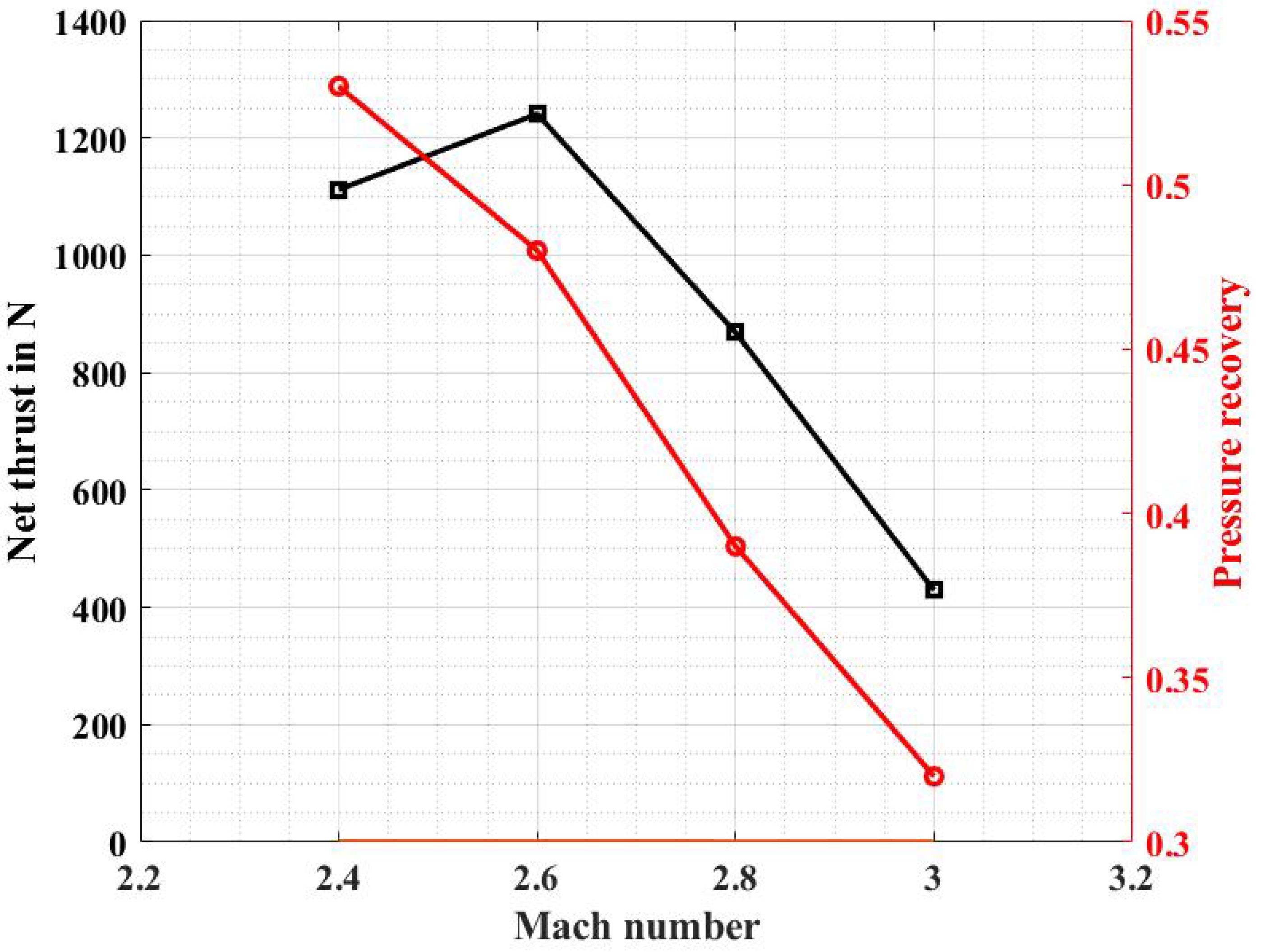 Many parameters, including the ramjet’s Mach number, air mass flow rate (