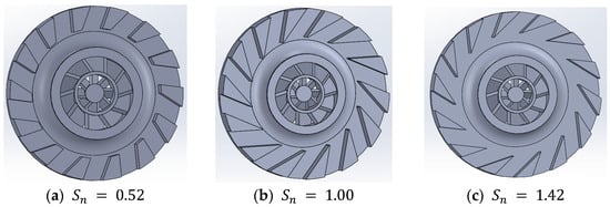 Swirler design for three swirl numbers: (a) , (b) , (c) .