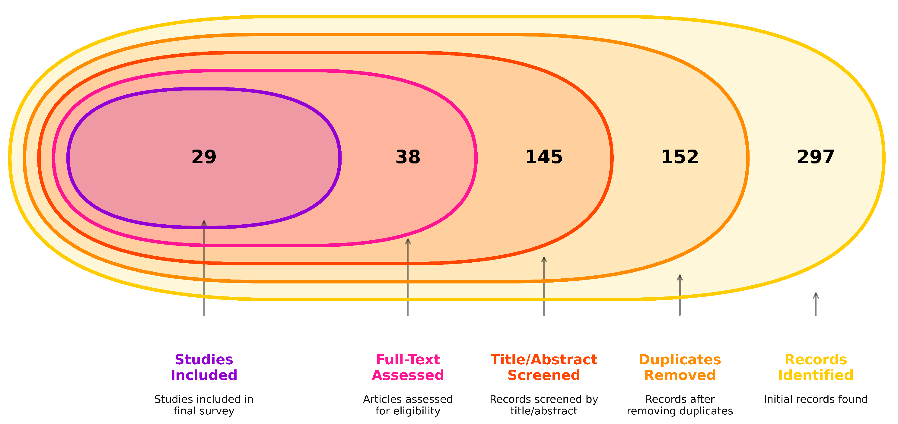 Figure 4. A total of 297 records were identified through database searching and citation chaining. After the removal of 152 duplicate records arising from overlapping database coverage and inconsistent bibliographic metadata, 145 unique records remained for title and abstract screening. Of these, 38 studies met the inclusion criteria and were selected for full-text assessment. Only 29 studies satisfied the eligibility requirements and constitute the final corpus of works systematically reviewed in this paper. The included studies are [