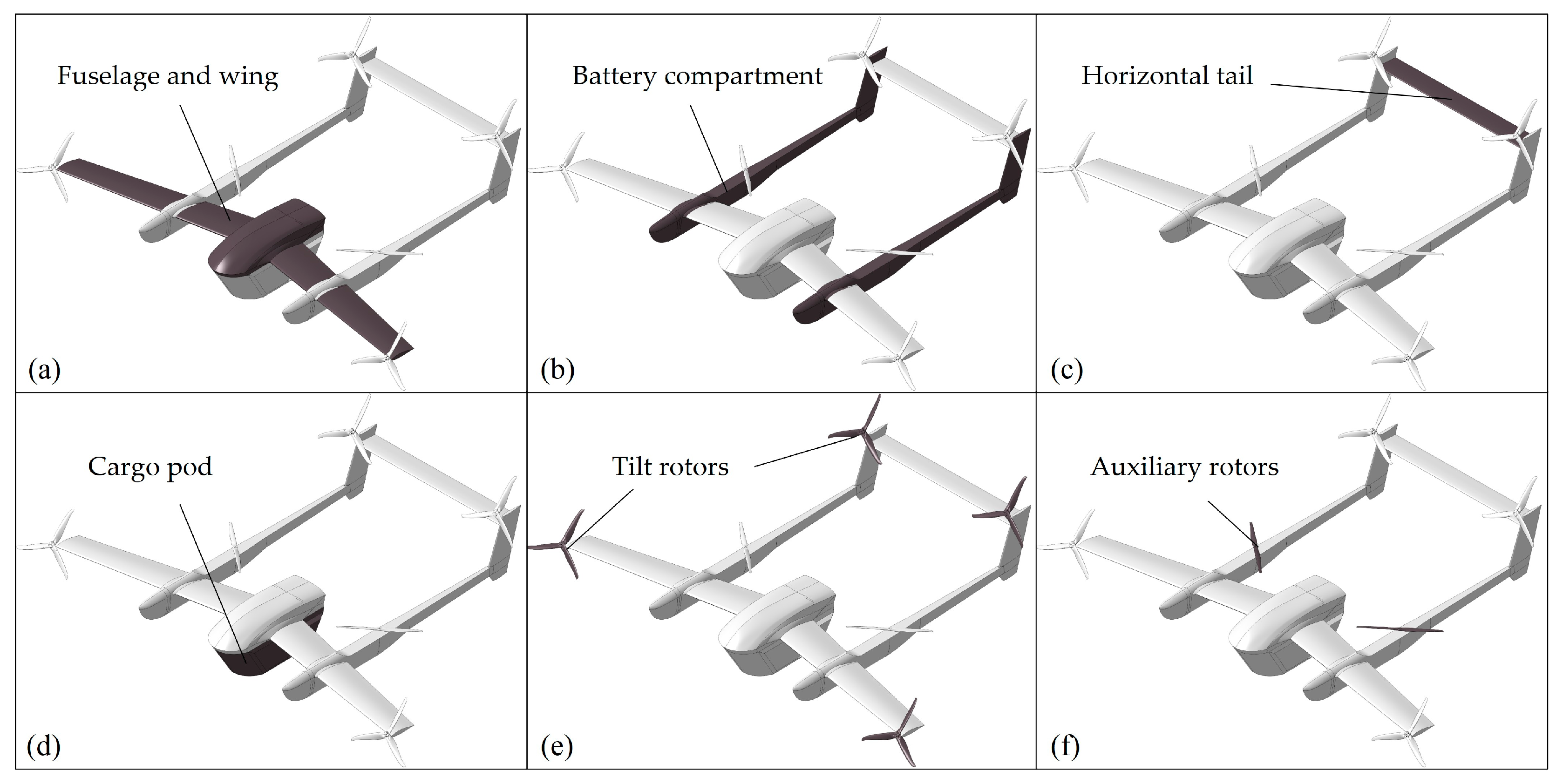 - Wang, Y.; Ma, W.; Chen, Z. Sensitivity Analysis for Design Parameters of Electric Tilt-Rotor Aircraft. Aerospace 2024, 11, 322. [Google Scholar] [CrossRef]