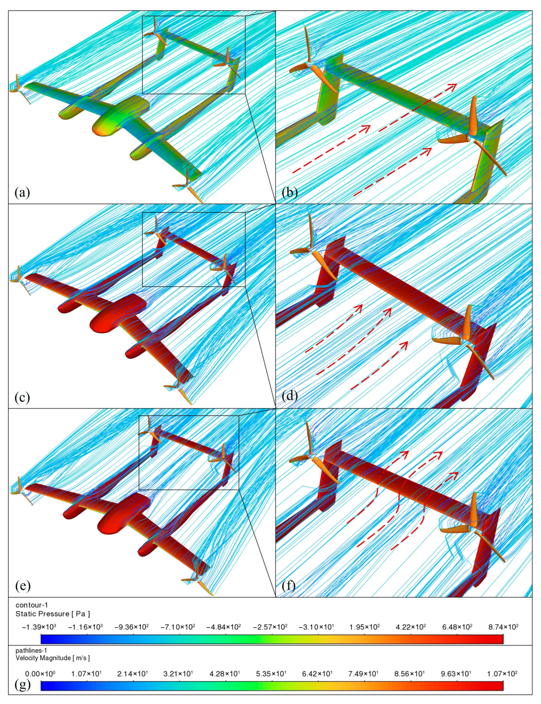 - Huang, Q.; He, G.; Jia, J.; Hong, Z.; Yu, F. Numerical simulation on aerodynamic characteristics of transition section of tilt-wing aircraft. Aerospace 2024, 11, 283. [Google Scholar] [CrossRef]