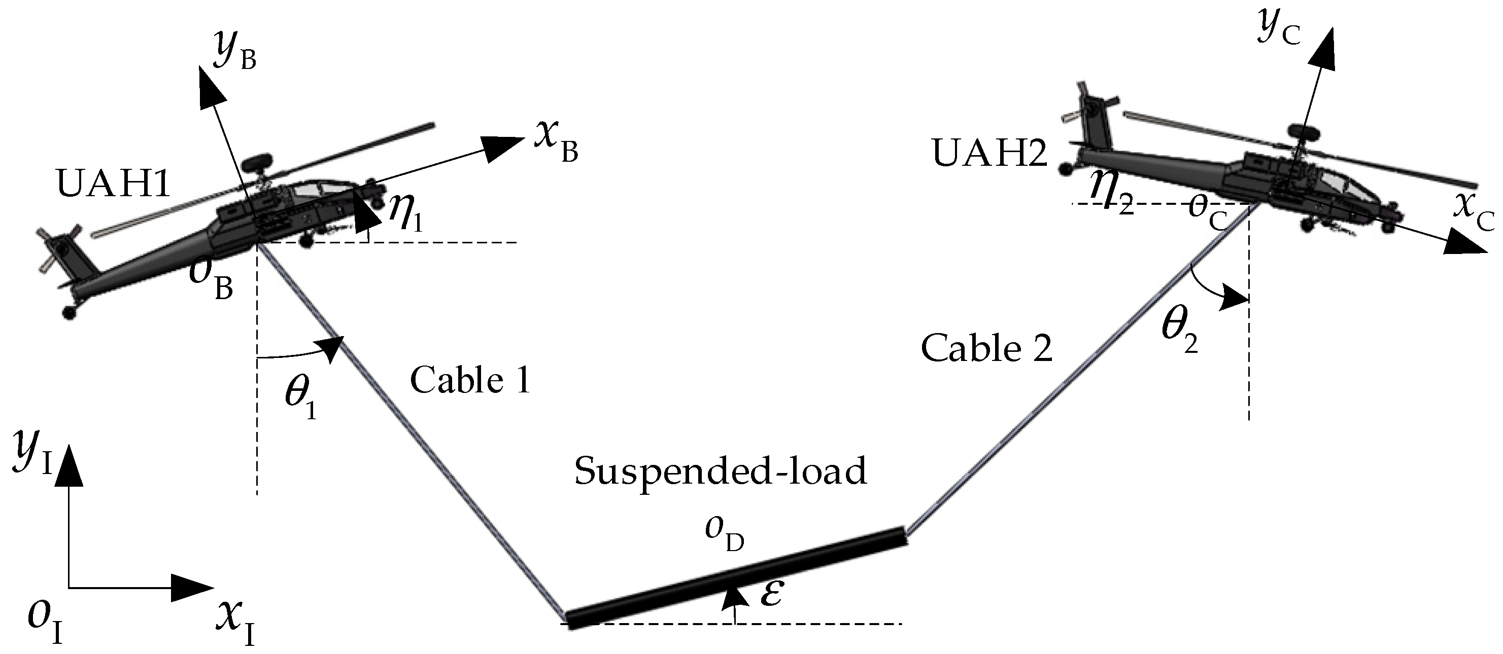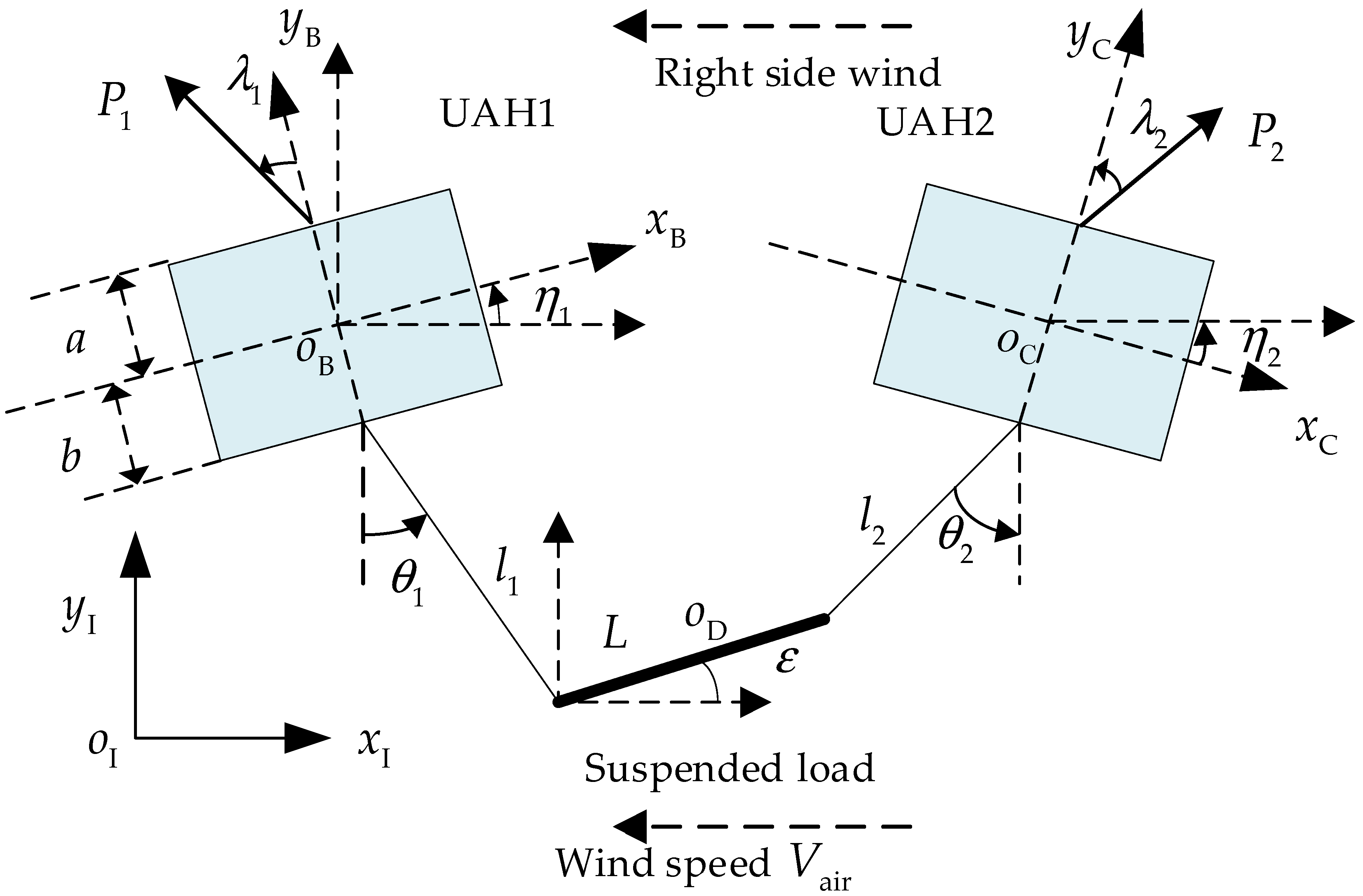 Condition 2 represents a typical scenario in dual-UAH slung load transportation. In this condition, by appropriately controlling the swing angles to maintain a fixed value, a safe distance between the two UAHs can be effectively ensured, thereby guaranteeing the reliability and safety of task execution. This scenario also imposes higher requirements on the stability and robustness of the controller, providing a comprehensive test of its adaptability and control performance in complex dynamic environments.