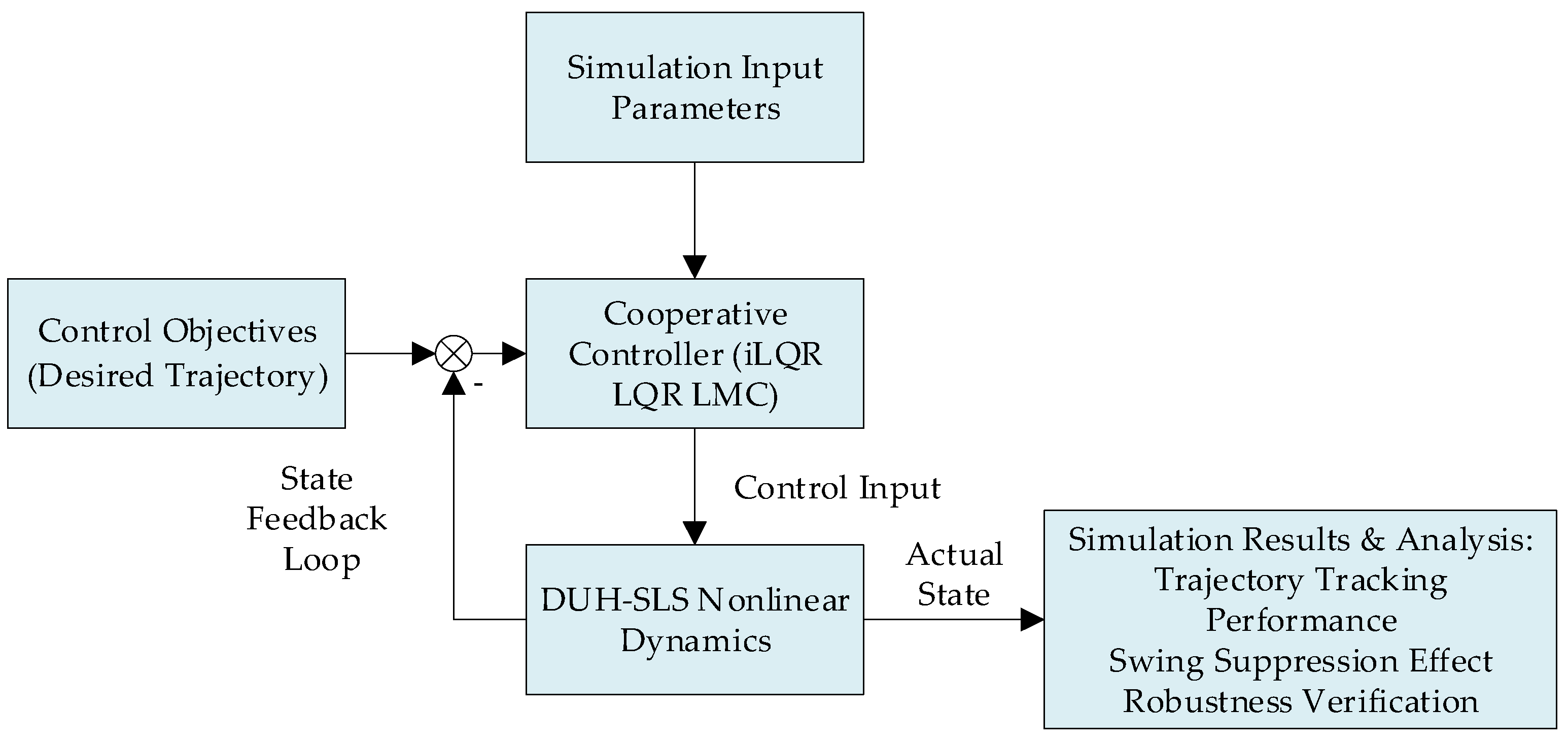 Table 5, the iLQR optimal controller demonstrates its effectiveness. It successfully reduces the peak values and oscillations of the control variables. Additionally, it achieves a higher level of control accuracy. This characteristic is of great significance in practical dual-UAH cooperative transportation tasks: lower peaks and oscillations of control variables can reduce actuator energy consumption, alleviate mechanical loads, extend equipment lifespan, and enhance the smoothness and safety of load transportation. These results demonstrate the superiority and engineering potential of the iLQR optimal controller in complex slung load missions.