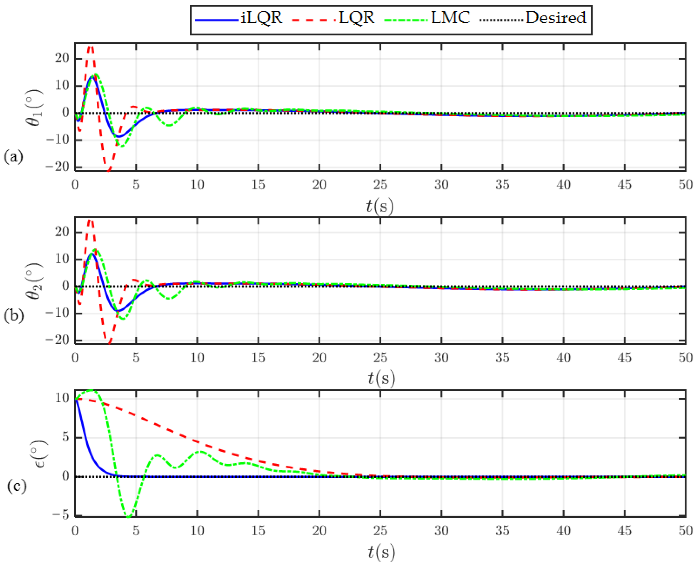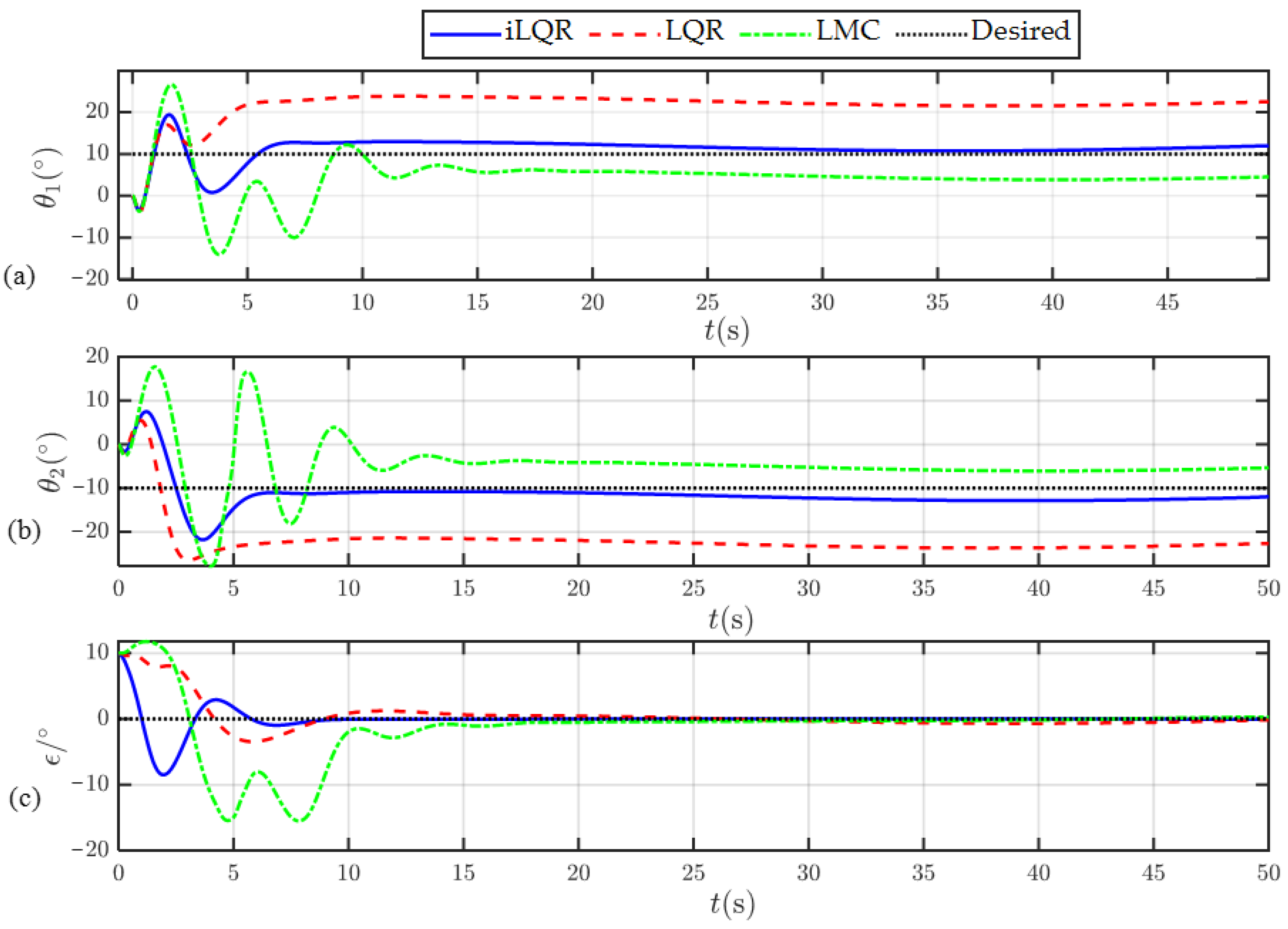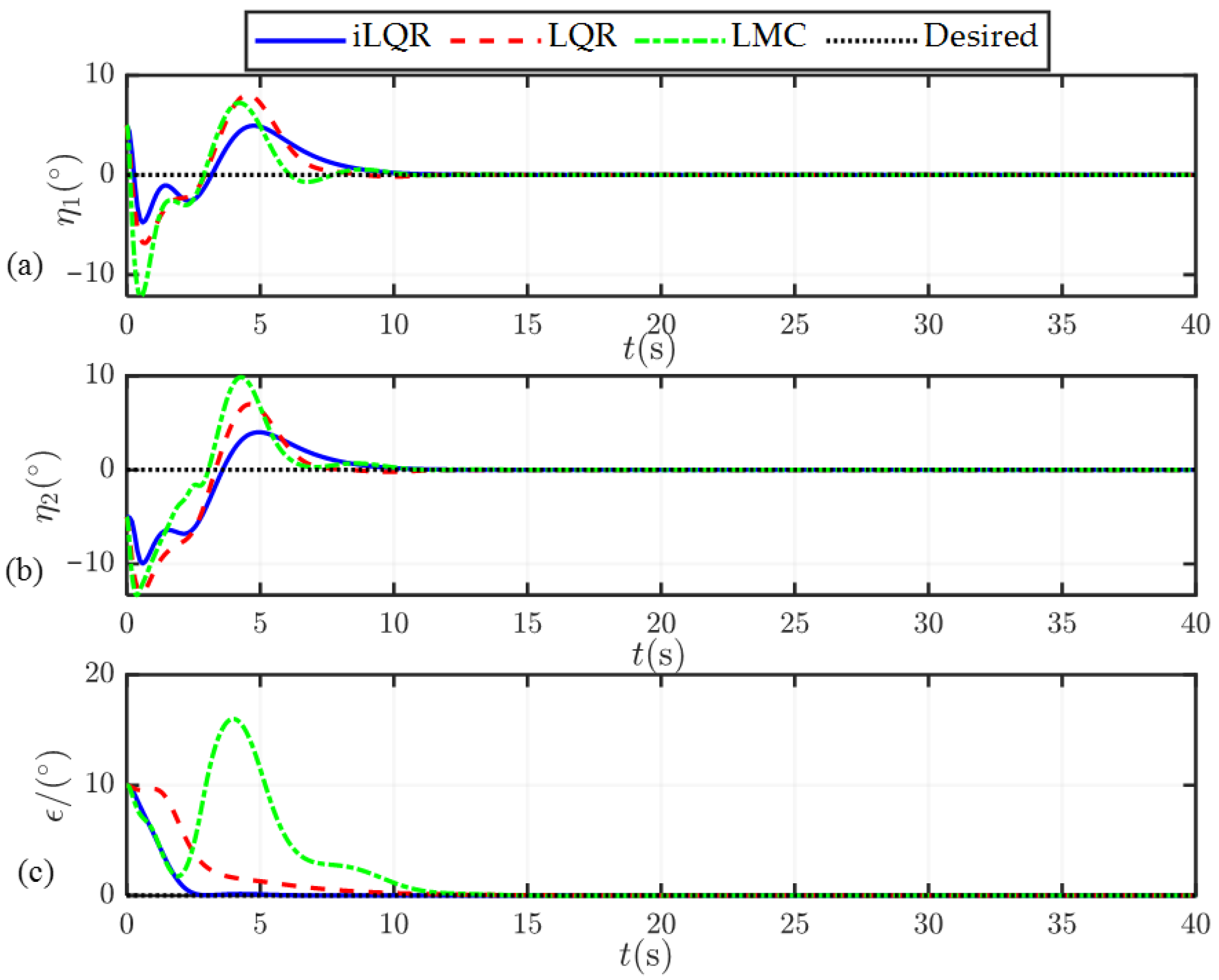 Figure 9 compare the performance of the three controllers based on the state response curves of the DUH-SLS, where the curves under the iLQR optimal controller are obtained after multiple iterations and convergence.