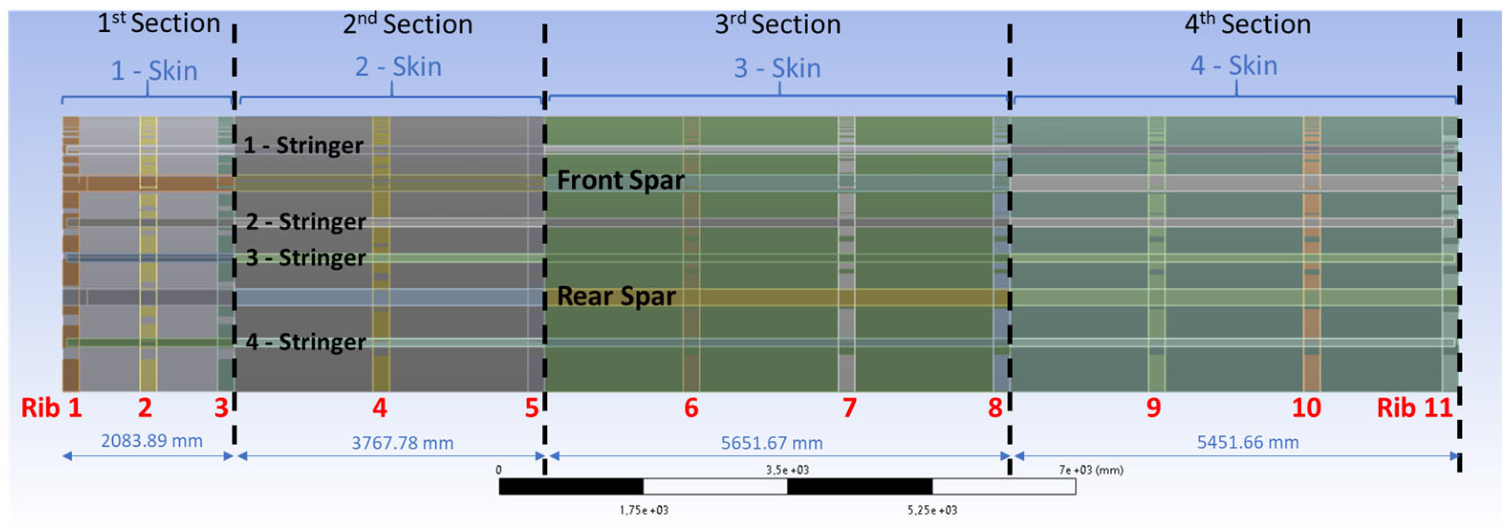 | Stringers | Section 1 | tstringer1 = tstringer2 = … = tstringer4 | P9: 5–15 |