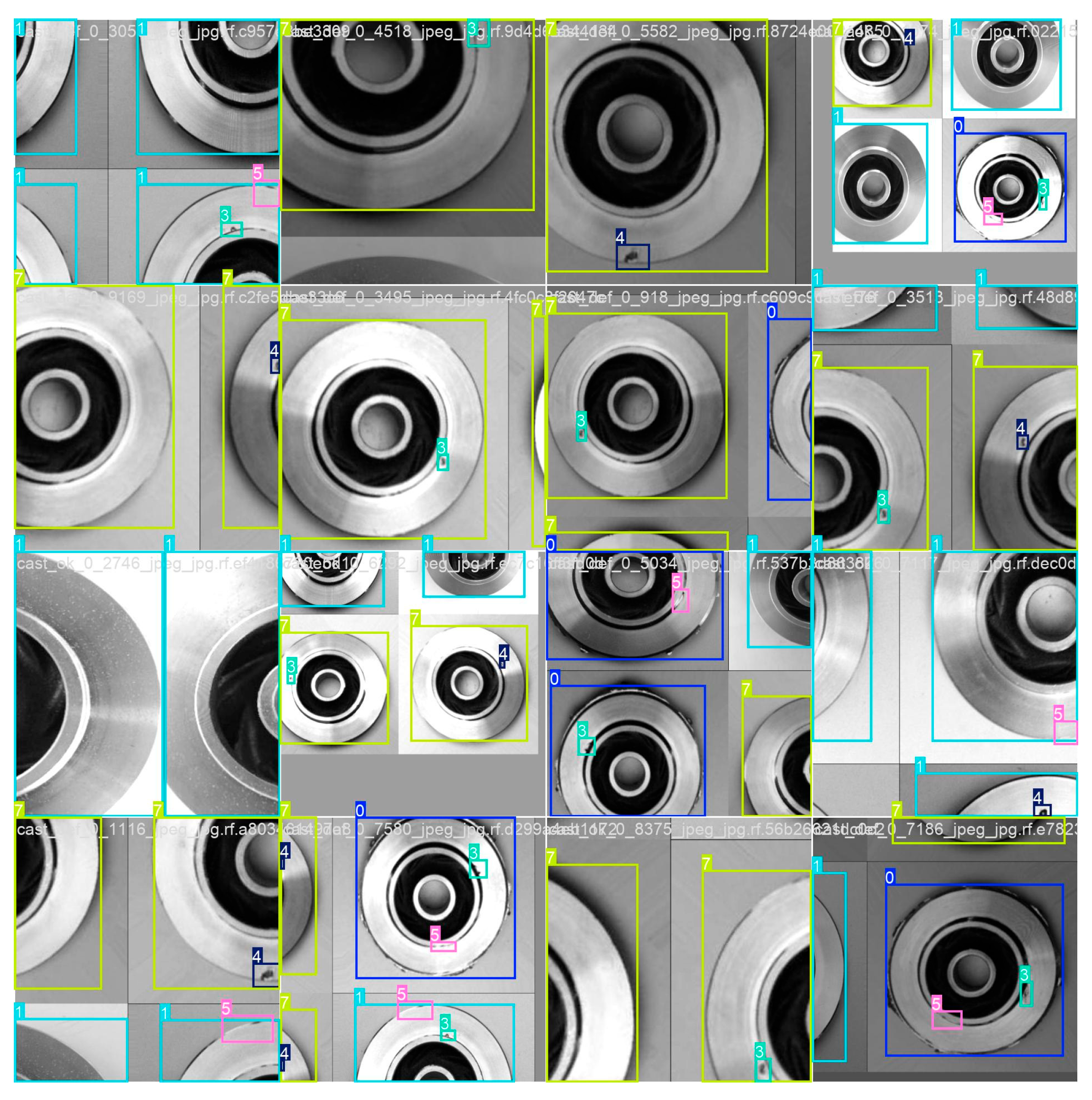 In this study, a bearing casting surface condition dataset, legally obtained from a commercial third-party source, was used to simulate surface defect inspection scenarios in industrial component manufacturing. The dataset is not publicly available and is used exclusively for academic research purposes. All defect categories in the dataset are predefined and manually annotated based on their visual characteristics, rather than explicit geometric or physical measurements such as size or depth. All images in the dataset are annotated using bounding boxes that enclose defect regions, following standard object detection labeling practices. Although the dataset used in this study is collected from industrial bearing manufacturing scenarios rather than directly from aerospace production lines, the defect types (e.g., cracks, pits, and scratches) and surface characteristics are highly relevant to those encountered in aero-engine component inspection. Therefore, the dataset is used as a representative benchmark to simulate visual inspection tasks in aerospace manufacturing environments. Bearings are widely used as critical rotating components in aero-engine systems, and their surface quality plays an important role in ensuring operational reliability. The dataset covers a variety of surface conditions that may occur during the production and machining processes of bearing castings, including eight defect categories: Casting burr, Polished casting, Burr, Crack, Pit, Scratch, Strain, and Unpolished casting. The dataset consists of 2561 images in the training set and 732 images in the validation set, with an image resolution of 640 × 640 pixels. The training-to-validation split ratio is 3:1.