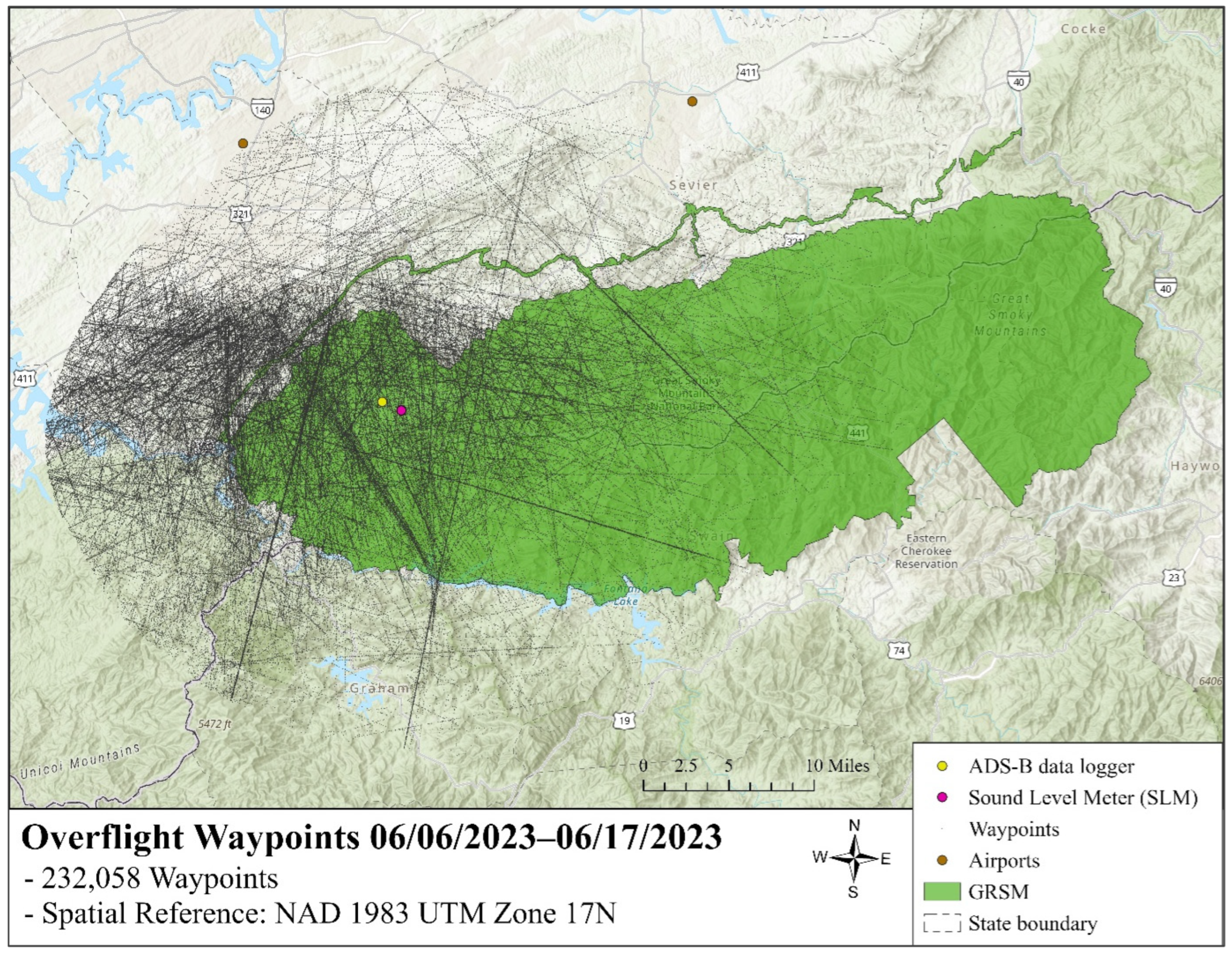 - National Park Service. Final Air Tour Management Plan: Great Smoky Mountains National Park; National Park Service: Washington, DC, USA, 2022. [Google Scholar]