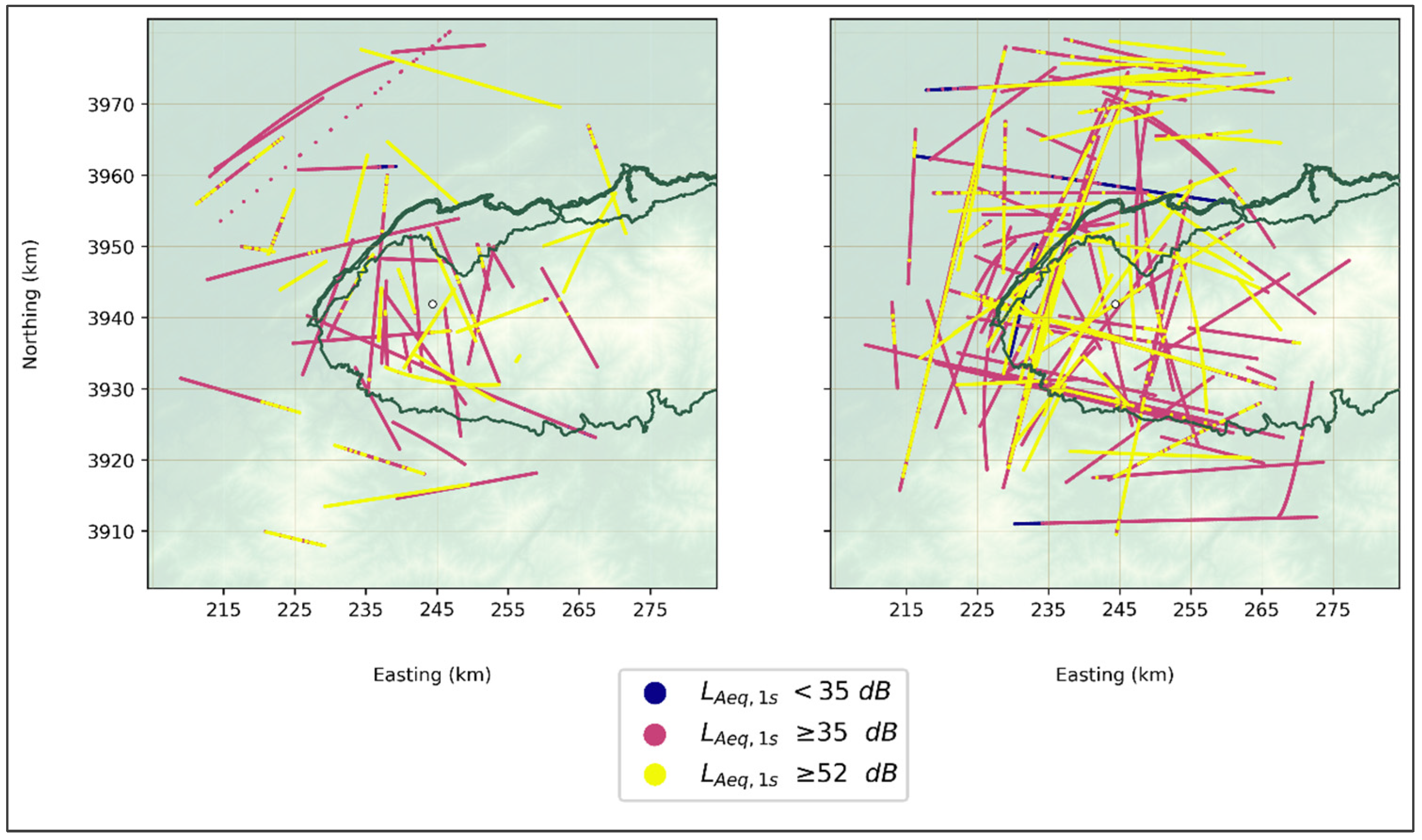 - Estimate the audible distance and generate quantitative estimates of active space for two aircraft types.