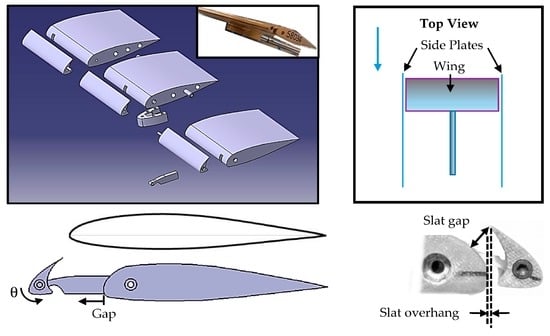 - Genc, M.S.; Kaynak, U.; Lock, G.D. Flow over an aerofoil without and with a leading-edge slat at a transitional Reynolds number. Proc. Inst. Mech. Eng. Part G J. Aerosp. Eng. 2009, 223, 217–231. [Google Scholar] [CrossRef]